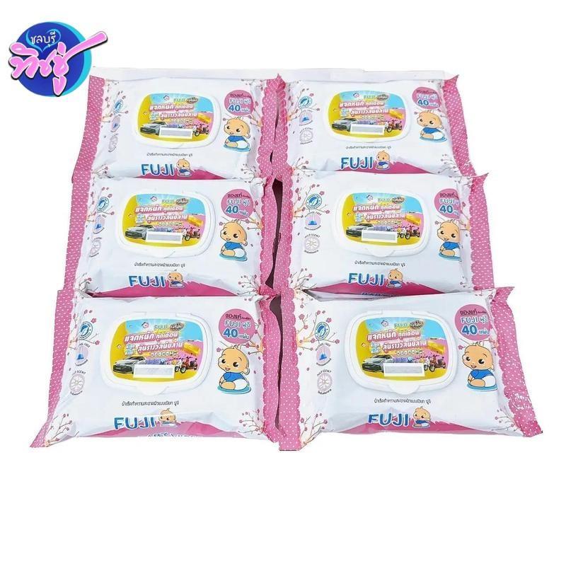 [เซท 6 ห่อ] FUJI ฟูจิ กระดาษทิชชู่เปียก เบบี้ไวพส์ บรรจุห่อ 40แผ่น สูตรอ่อนโยนต่อเด็ก สะอาดปลอดภัย