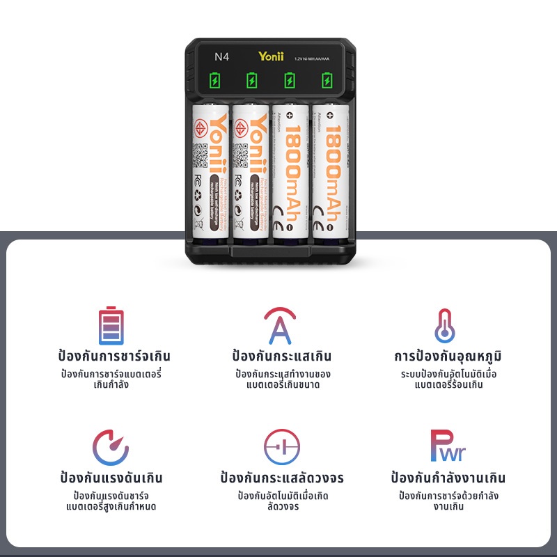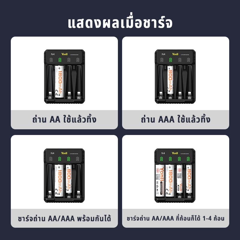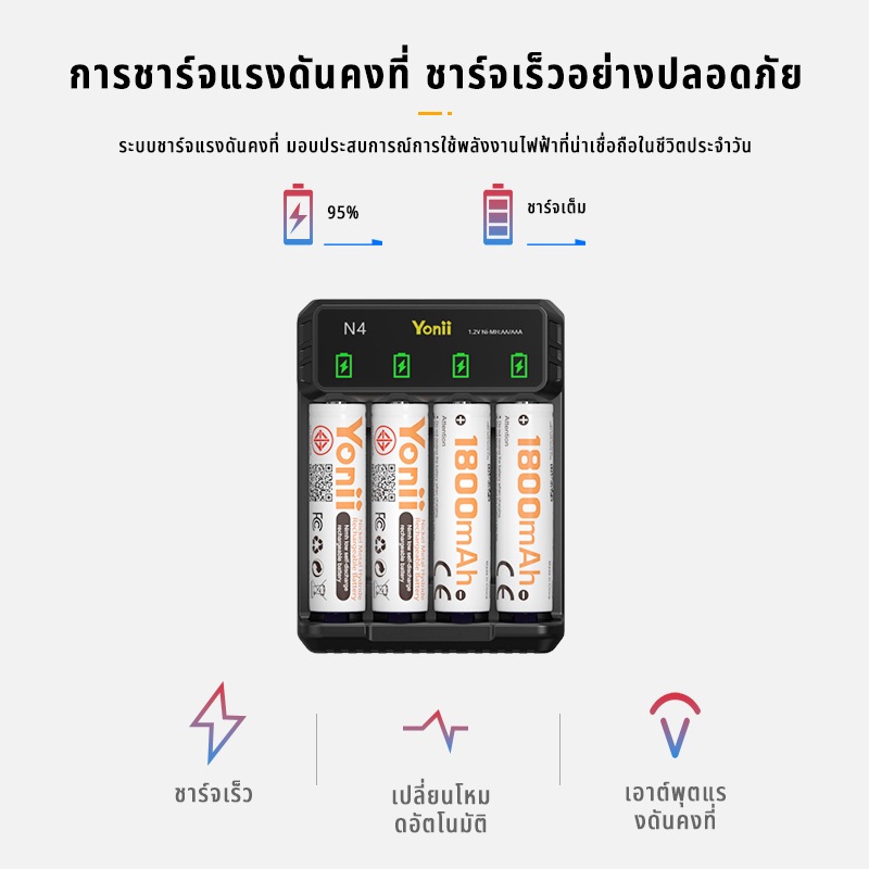 Yonii 1.2V Ni-MH แบตเตอรี่ AA1800mAh/ AAA800mAh 3A/2A แบตเตอรี่ชาร์จ