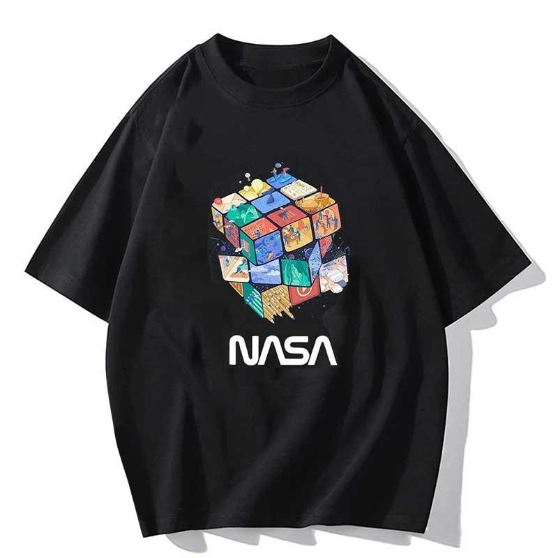(ผ้าฝ้าย 100%)Luvoro oversize unisex เนื้อผ้านุ่มระบายแขนสั้น T-shirt สีดำและสีขาว เสื้อยืดทูโทน เสื้อยืดแขนสั้น C1081