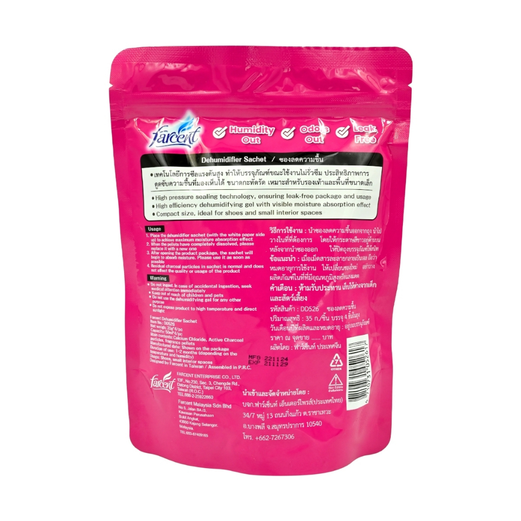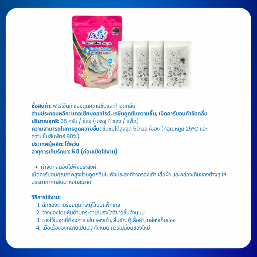 ฟาร์เซ็นท์ ซองดูดความชื้นและกำจัดกลิ่น (4 ซอง/ถุง)