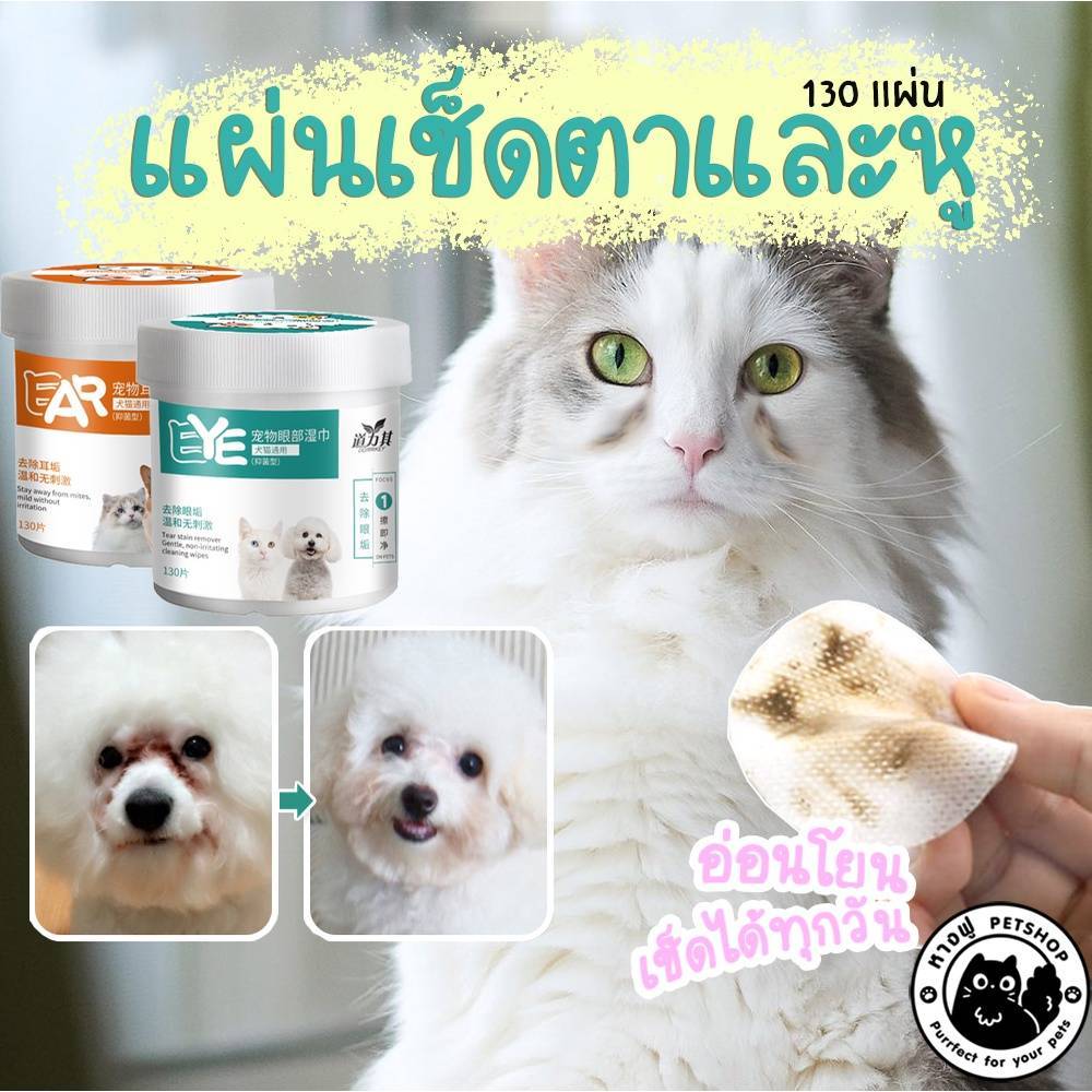 แผ่นเช็ดตา หู และฟัน สุนัขและแมว 130แผ่น ปลอดภัย อ่อนโยน ทิชชู่เปียกสัตว์เลี้ยง