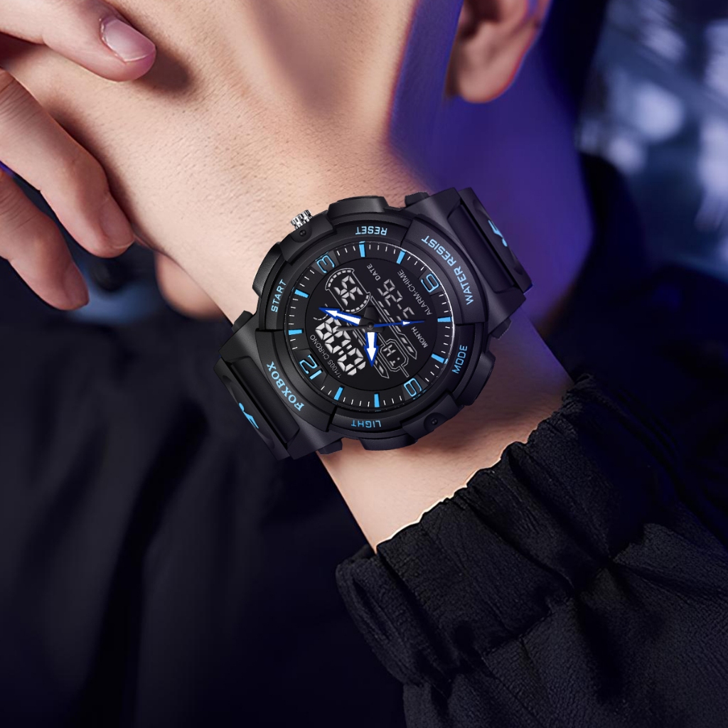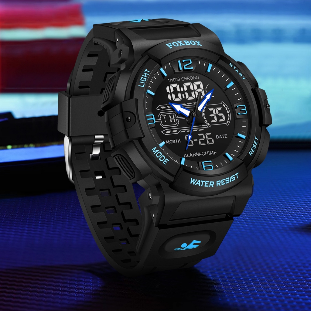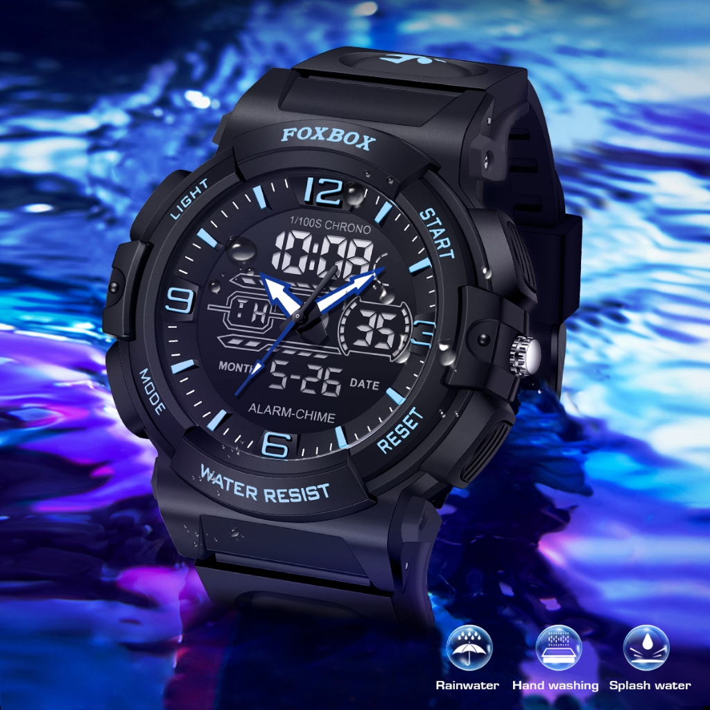 FOXBOX ฟ็อกซ์บ็อกซ์ ใหม่นาฬิกาผู้ชายกีฬานาฬิกาข้อมืออิเล็กทรอนิกส์กันน้ําแฟชั่นเรืองแสงจอแสดงผลคู่ดิจิตอลควอตซ์ แค่ นาฬิกาของขวัญเด็ก Watch Men