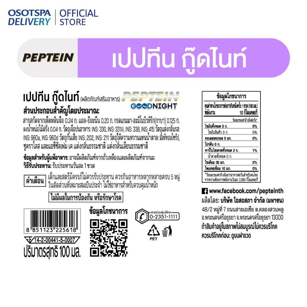 [ใหม่]Peptein Goodnight 100ML / เปปทีน กู๊ดไนท์ 100มล. - เลือกแพ็คด้านใน