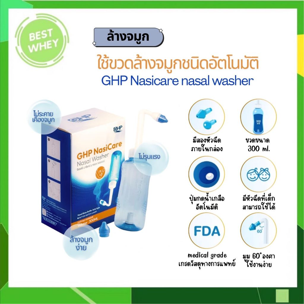 ขวดล้างจมูกชนิดอัตโนมัติ GHP Nasicare nasal washer ( ปริมาณ 300 ml.) 6606