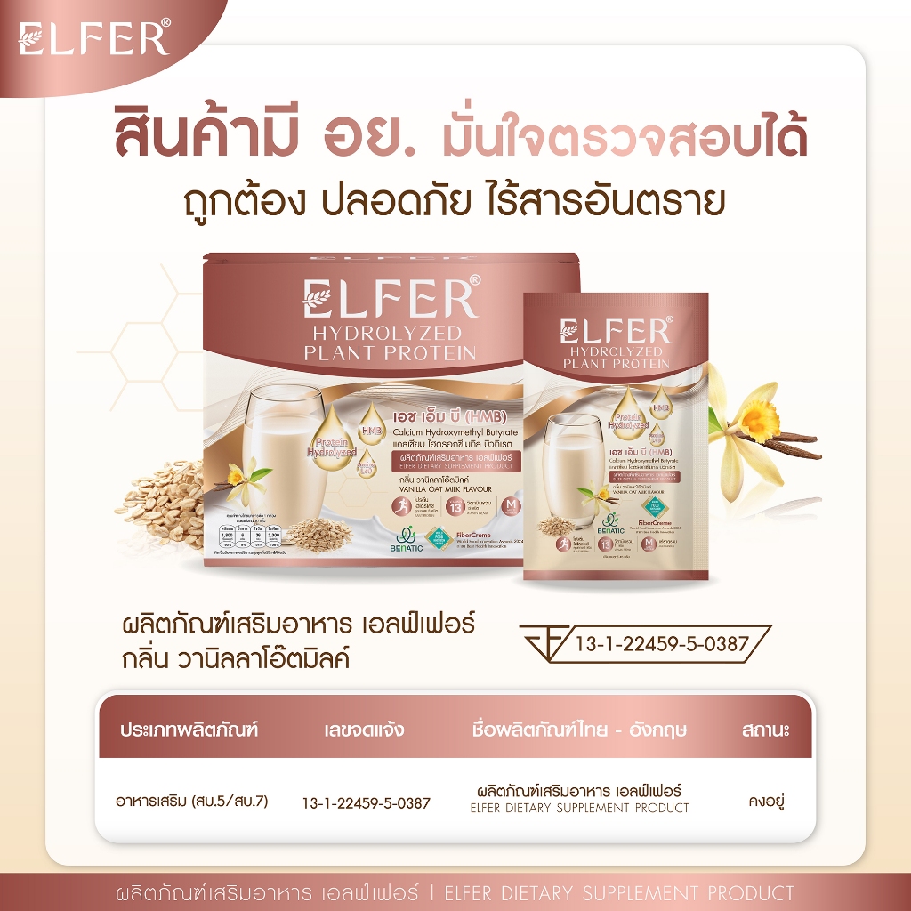 เอลฟ์เฟอร์ กลิ่น วานิลาโอ๊ตมิลค์ ผลิตภัณฑ์เสริมอาหาร ELFER VANILLA OAT MILK FLAVOUR DIETARY