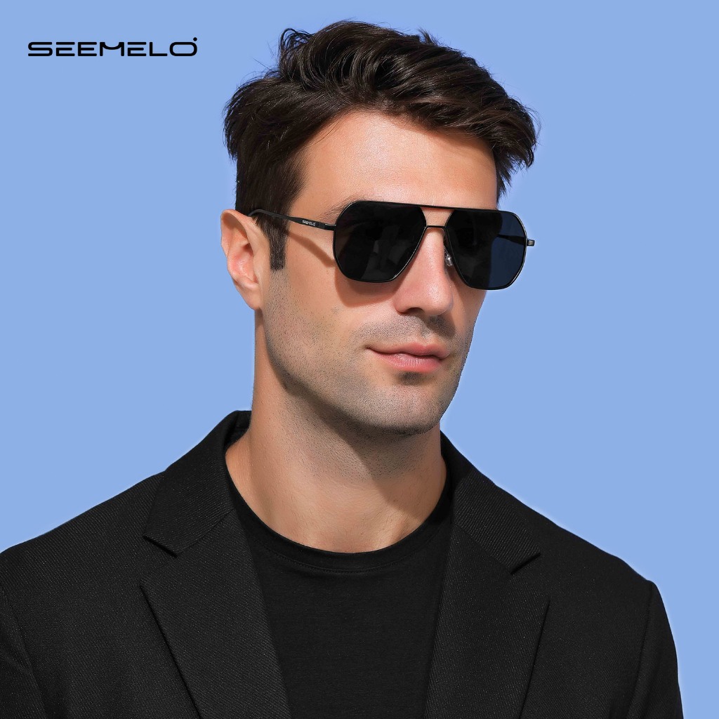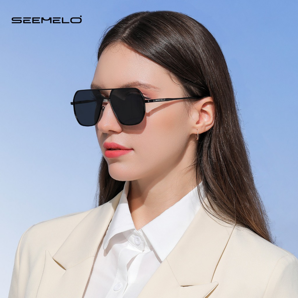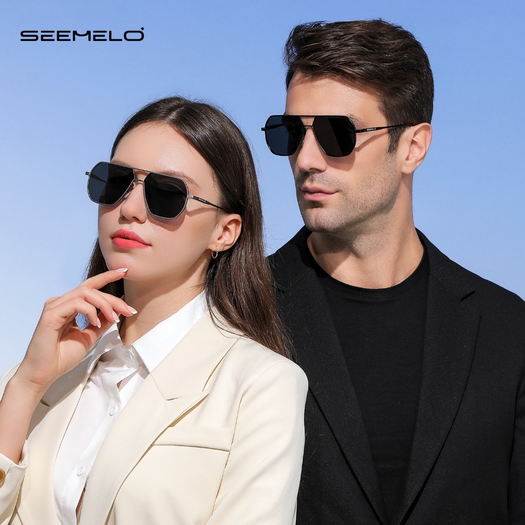 SEEMLO ผู้ชายผู้หญิงแว่นตากันแดดกรอบใหญ่แว่นตากันแดด Double Beam TAC แว่นตากันแดดโพลาไรซ์ UV400