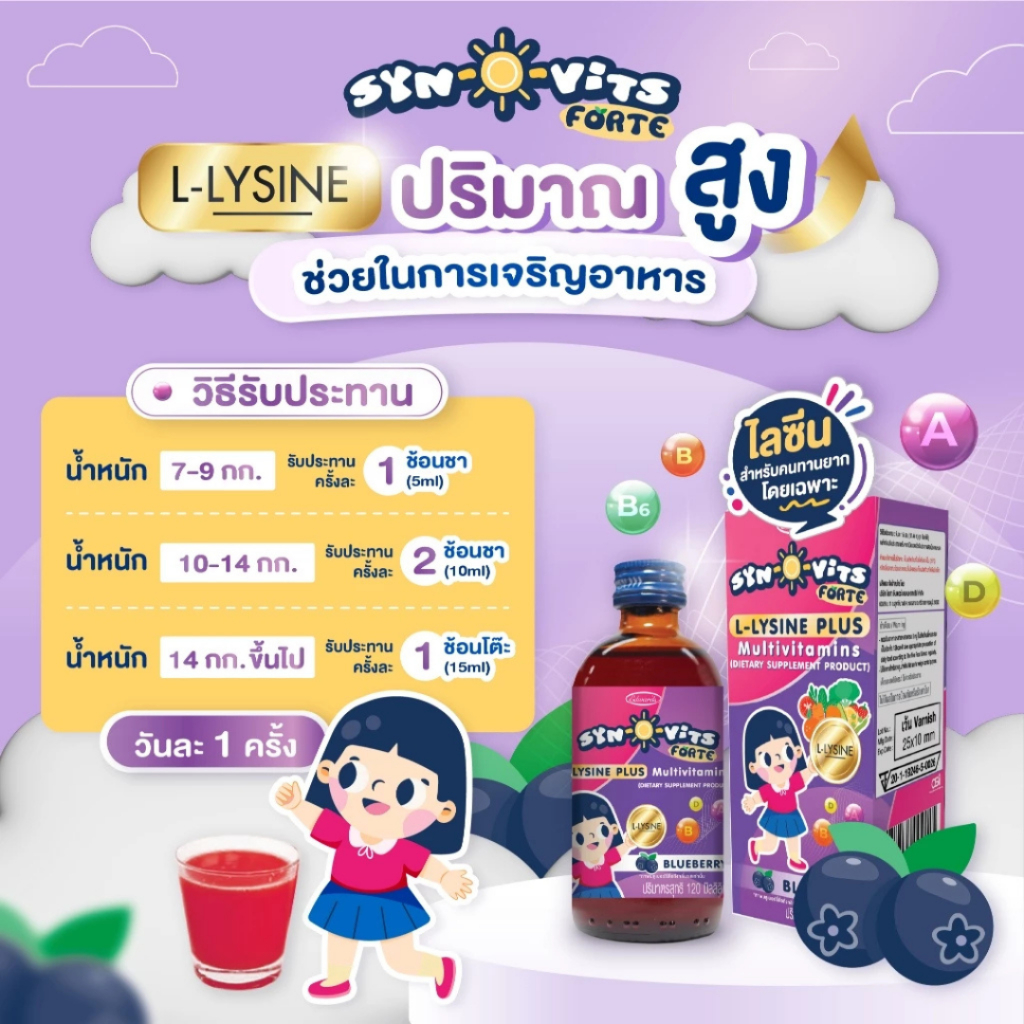Syn – O – Vits Forte L-Lysine plus Multivitamin วิตามินเด็ก สำหรับเด็กทานยาก ลูกเจริญอาหาร เสริมพัฒนาการสมวัย