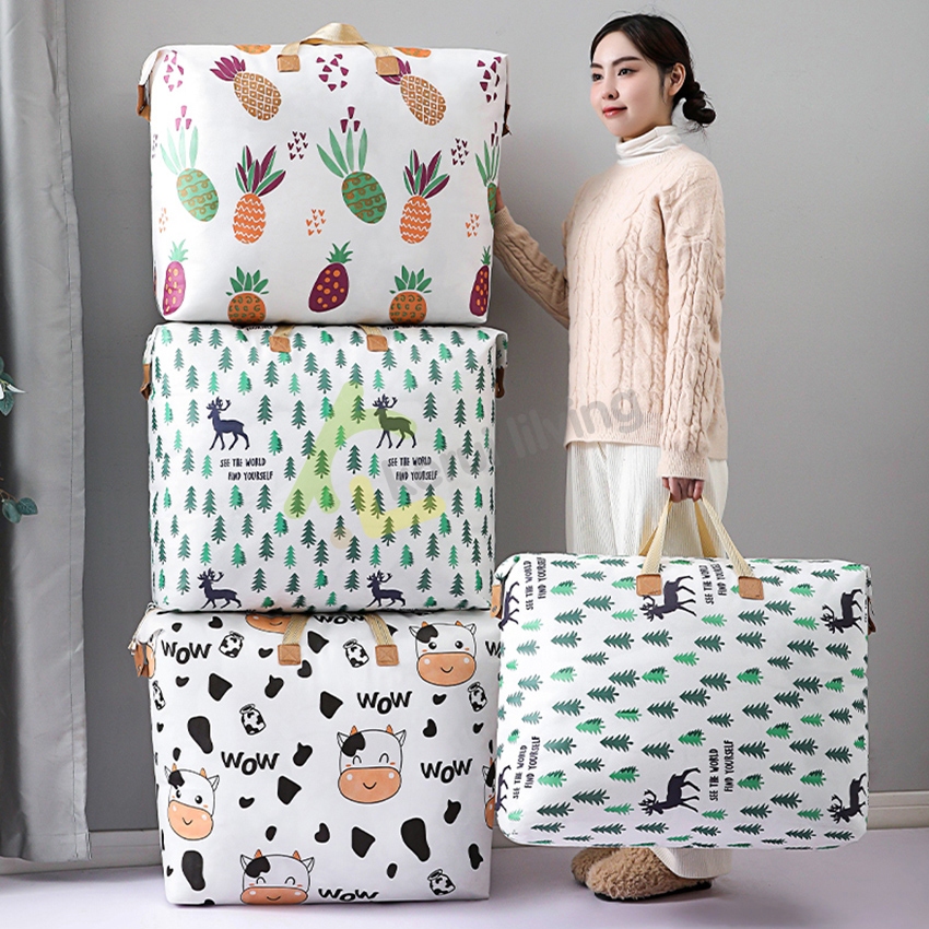 Cobbe ถุงเก็บผ้านวม มีซิป กระเป๋าเก็บของ ความจุ 35/48/120 L กระเป๋าเก็บเสื้อผ้า พิมพ์ลายน่ารัก ใช้งานได้หลากหลาย
