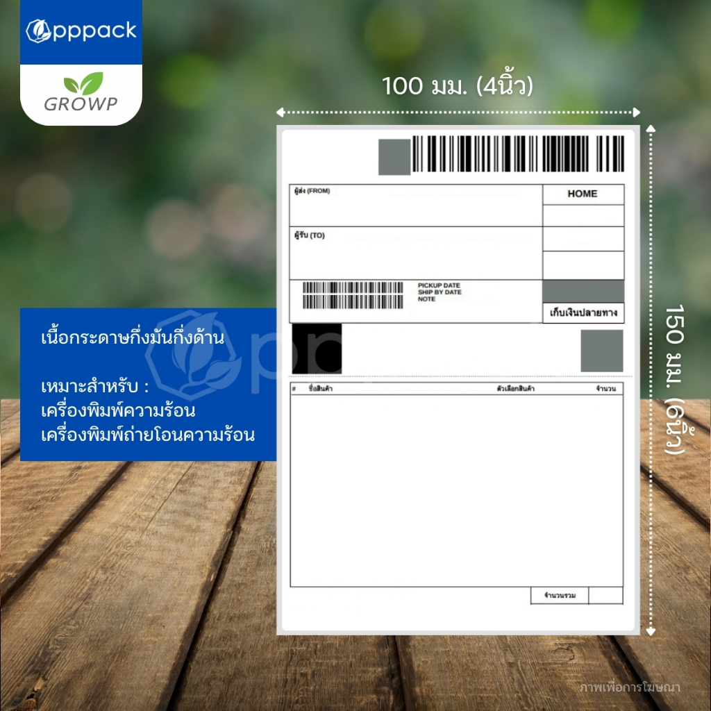 กระดาษสติ๊กเกอร์ความร้อน ใบปะหน้า 100x150มม. (แบบม้วน/แบบพับ) ไม่ใช้หมึก label sticker