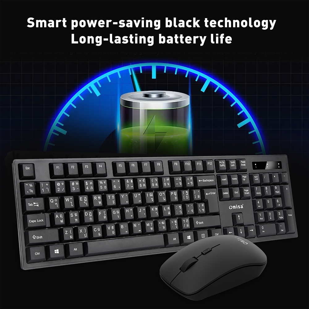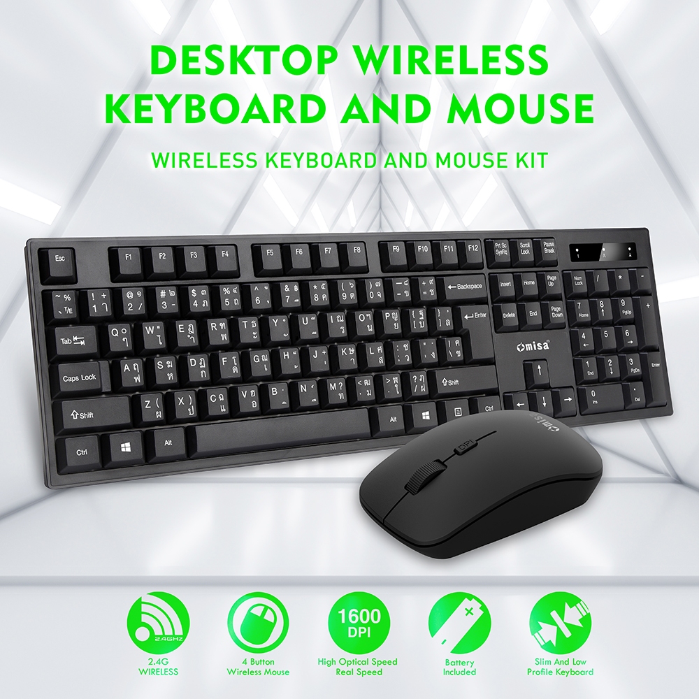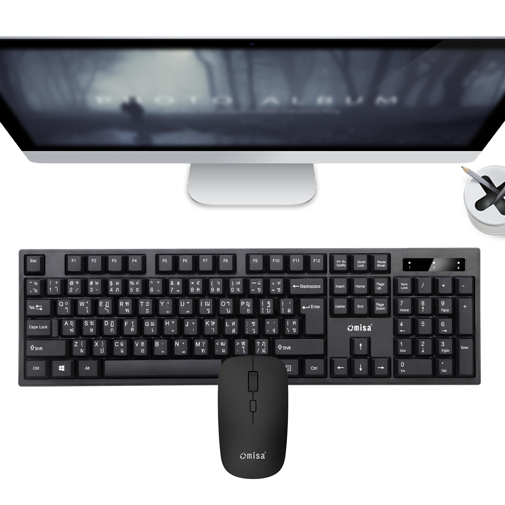 [ซื้อ1แถมMOUSE PADผ้า 1]OMISA KM-388 ชุดคีย์บอร์ด+เมาส์ไร้สาย2.4G(ปุ่มกดเสียงเงียบ)