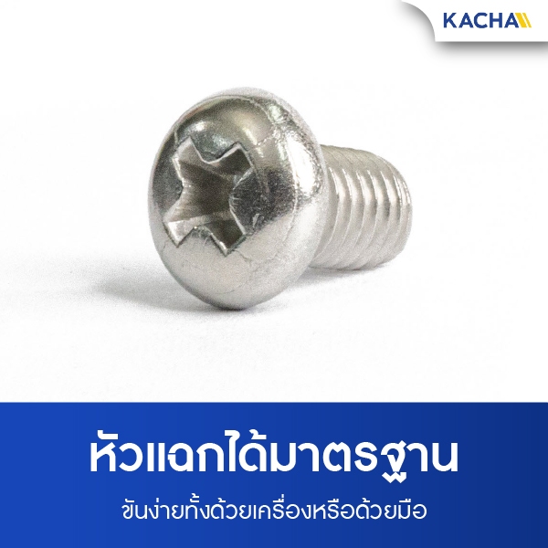 KACHA น็อต สกรู หัวกลม หัวแพน แฉก P+ เกลียวมิล M6 สแตนเลส 304 เกลียวมิล หยาบ SUS304 GB818