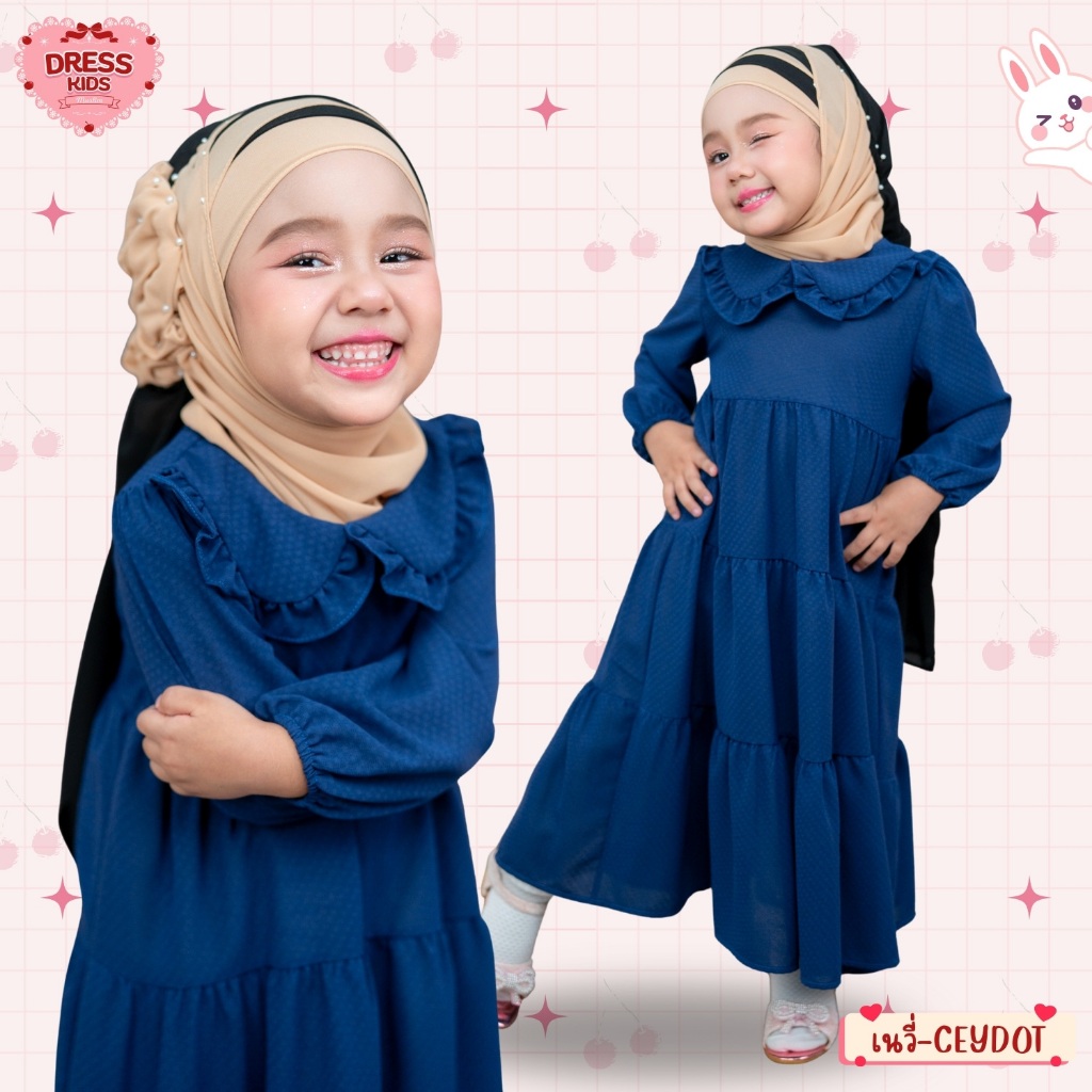 ชุดกระโปรงเด็กผู้หญิงสีดำ ทรงขนมชั้น เนื้อผ้าบลิสกีน ทรงคอบัวระบาย แขนสม็อค มีซิปหลังGC38วาริสมุสลิม