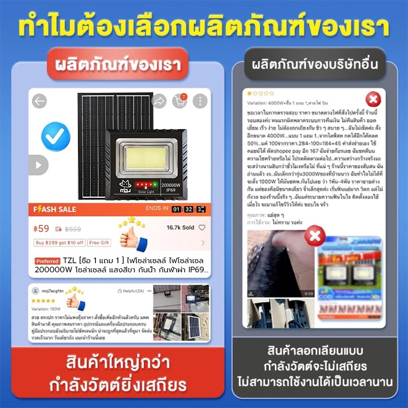 TZL【ซื้อ 1 แถม 1】ไฟโซล่าเซลล์ ไฟโซล่าเซล 850000W โซล่าเซลล์ แสงสีขา กันน้ำ กันฟ้าผ่า IP69 ไฟกลางแจ้งพลังงานแสงอาทิตย