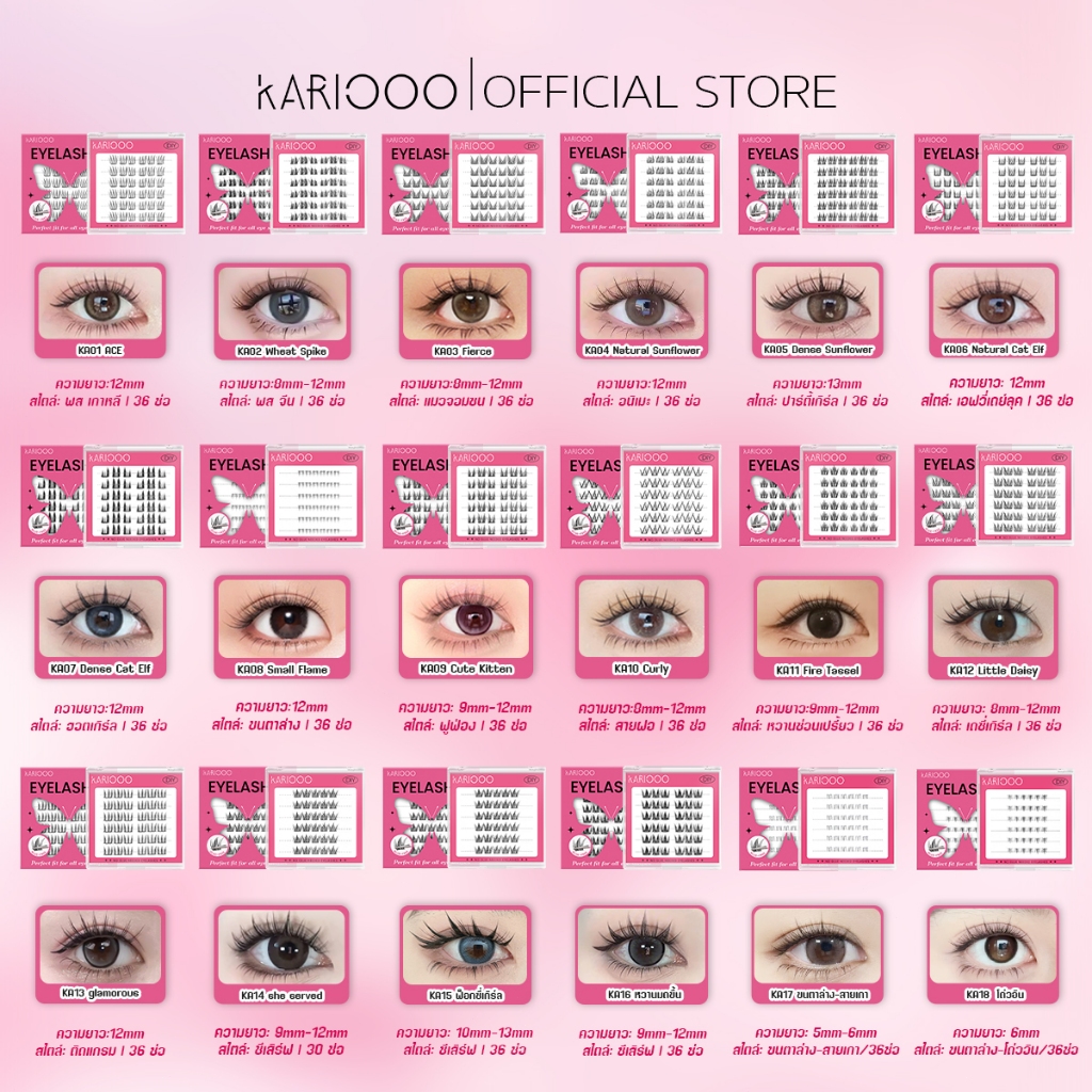 Kariooo ขนตาปลอมแบบไม่ต้องใช้กาว มีหลายสไตล์และขนาดให้เลือก แบบช่อเพื่อความสะดวก KA01-18