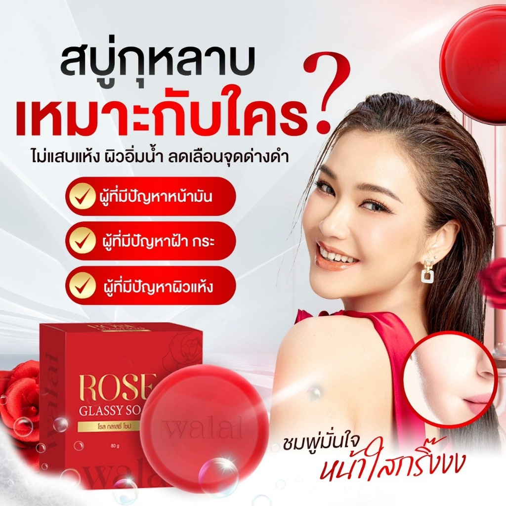 (1 ก้อน) สบู่กุหลาบ วลัย โรส กลอสซี่ โซป บำรุงผิว ชะลอวัย ลด ฝ้า กระ จุดด่างดำ