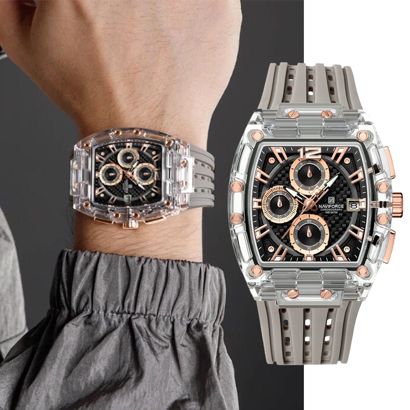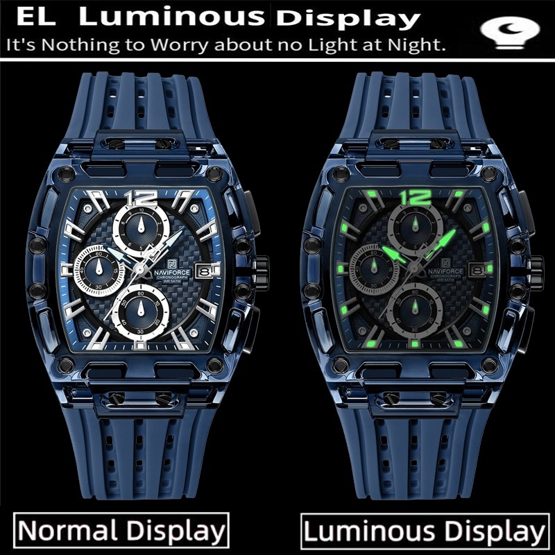 นาวีฟอร์ซ มือเรืองแสงธุรกิจกีฬานาฬิกาวันที่แฟชั่นสายรัดซิลิโคนบุรุษควอตซ์โครโนกราฟ 30ม กันน้ํา