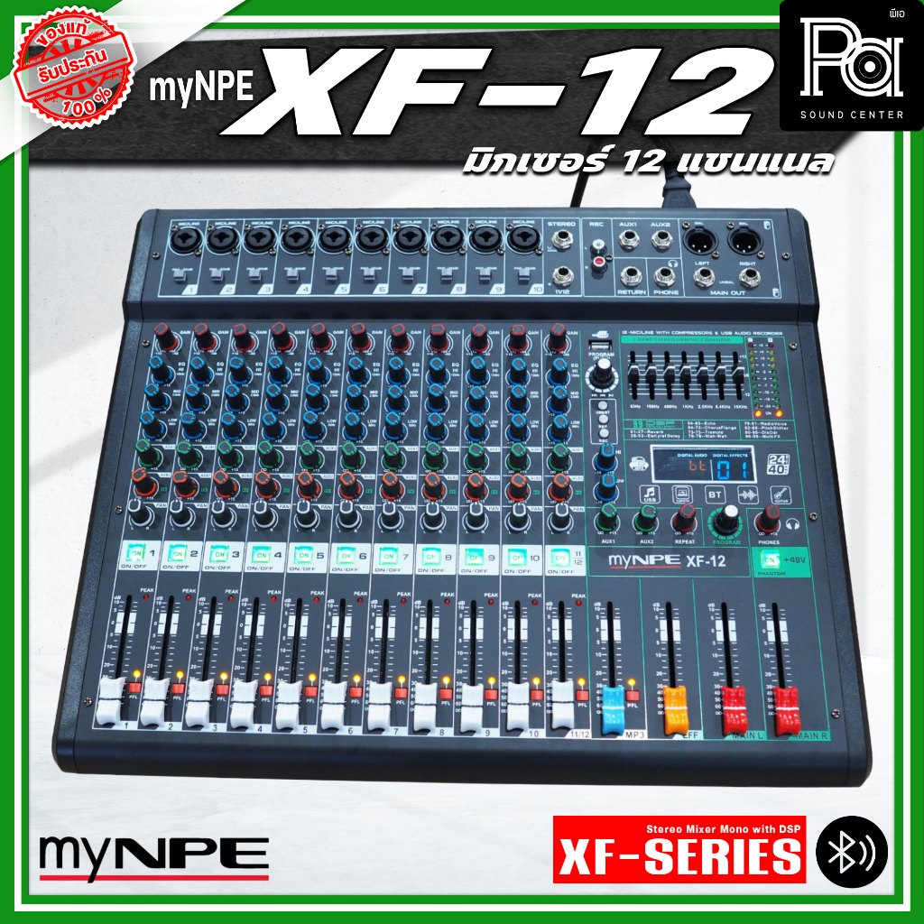 myNPE XF-12 มิกเซอร์อนาลอก 12 แชนแนล XF12 รองรับระบบเชื่อมต่อ บลูทูธ USB เอฟเฟคแท้ 99 แบรนด์
