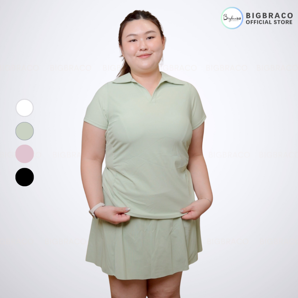 (Plussize L-5XL)Bigbraco| PS004-ชุดออกกำลังกายผู้หญิง ชุดเซ็ท เสื้อโปโลแขนสั้นและกางเกงกระโปรงเอวสูงซับใน(ขายแยกชิ้น)