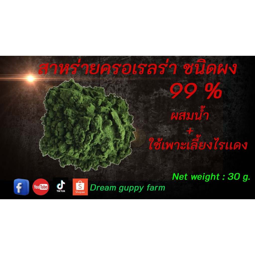 30 กรัม สาหร่ายครอเรลร่า ชนิดผง ผสมน้ำ ใช้เพาะเลี้ยงไรเเดง มงกุฎทอง
