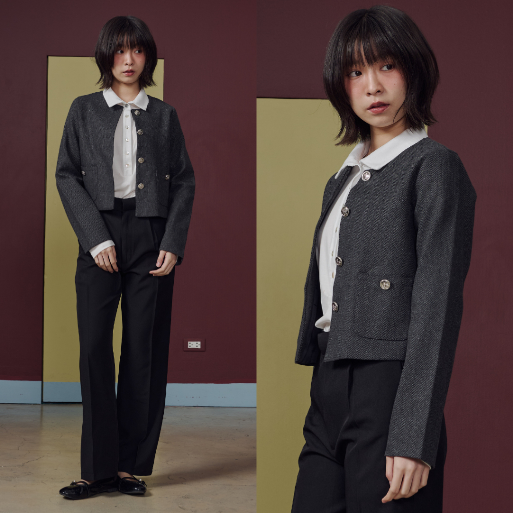(พร้อมส่ง)Bemingtop1016(S-3XL)-BMG Tweed-Lookคาร์ดิแกนทรงเบลเซอร์เรียบหรู ที่ใส่แล้วดูเนี้ยบแบบ effortless