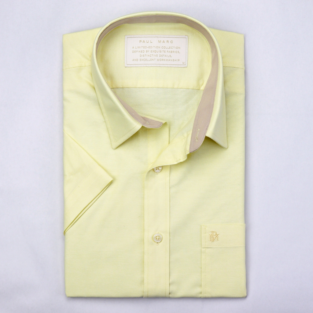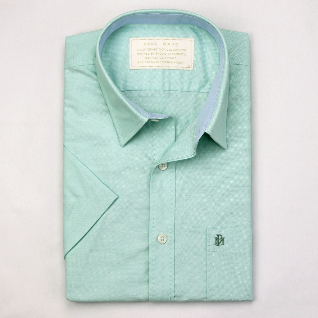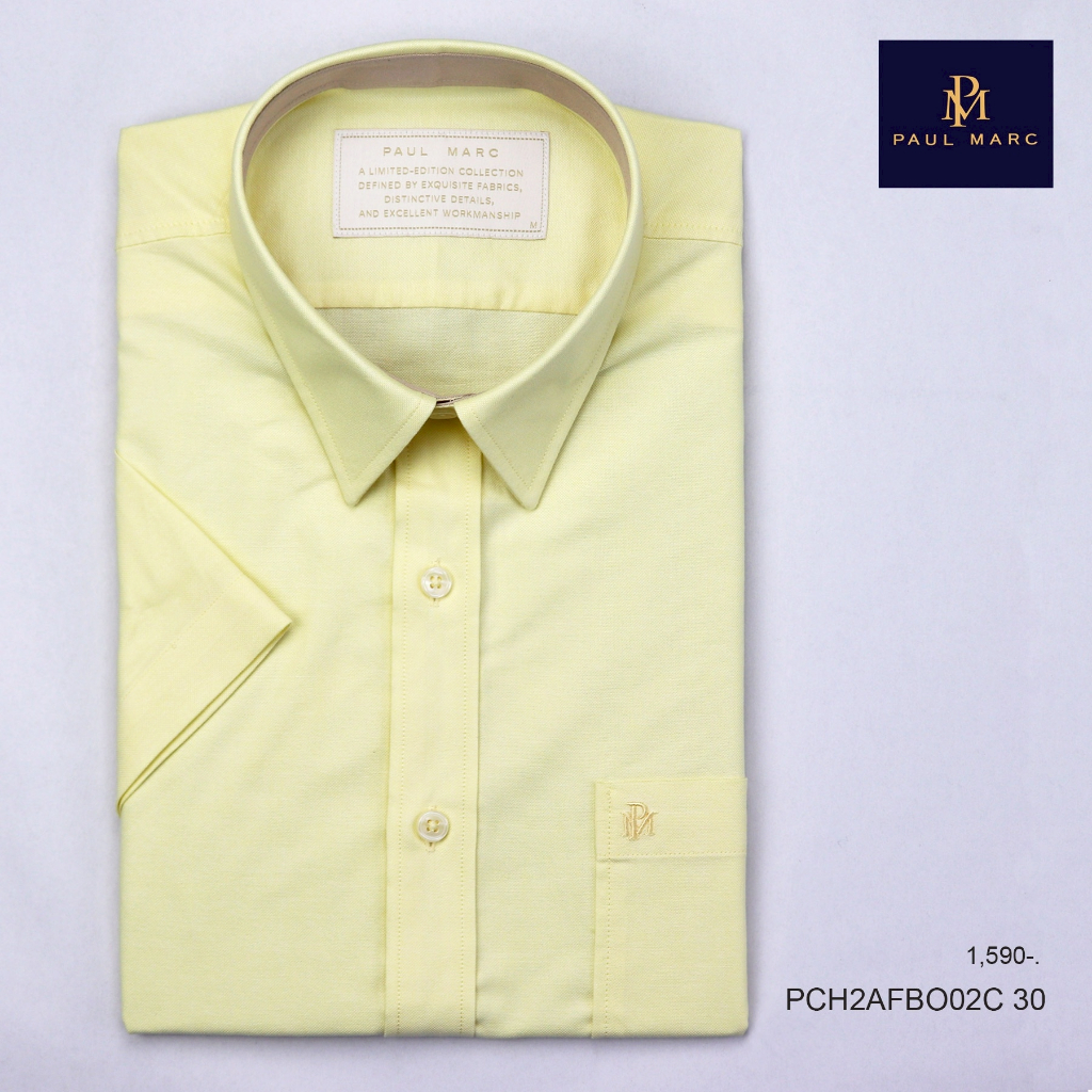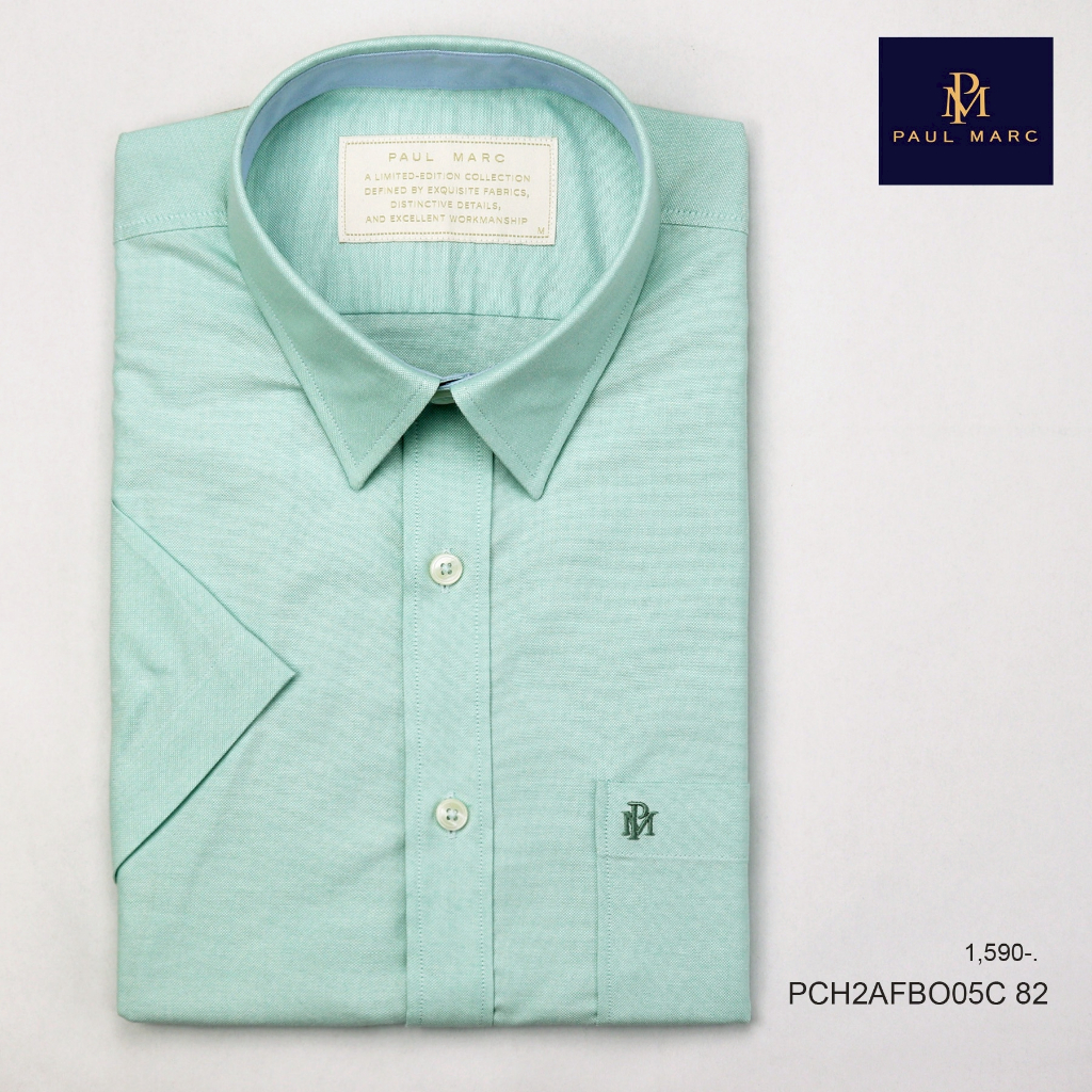 PAUL MARC เสื้อเชิ้ตแขนสั้น ผ้าoxford นุ่มรีดง่าย สีเขียว เหลือง ชมพู slim fit PCH2AFBO05C /02C/03C