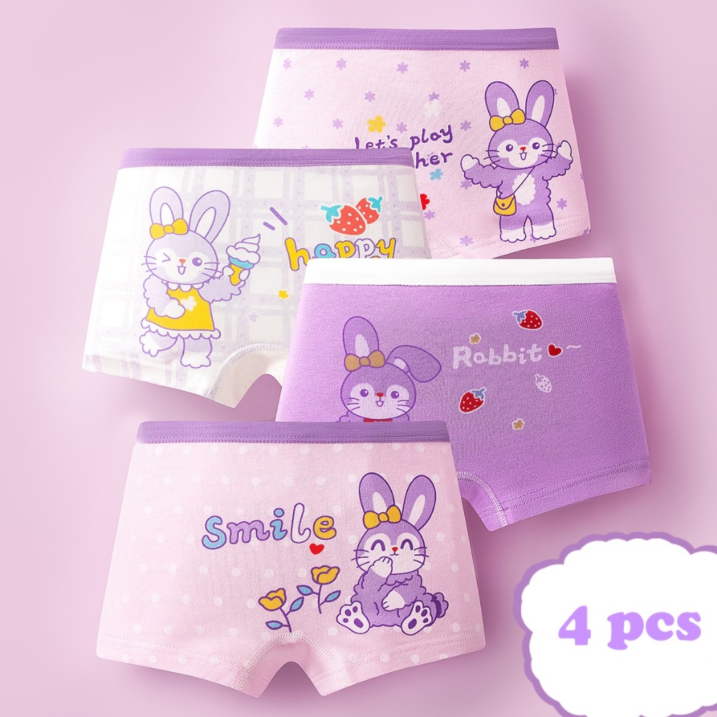 กางเกงในเด็กผู้หญิง ผ้าฝ้ายนุ่มสบาย 4 ชิ้น ลายกระต่าย สีม่วง หลากหลายไซส์