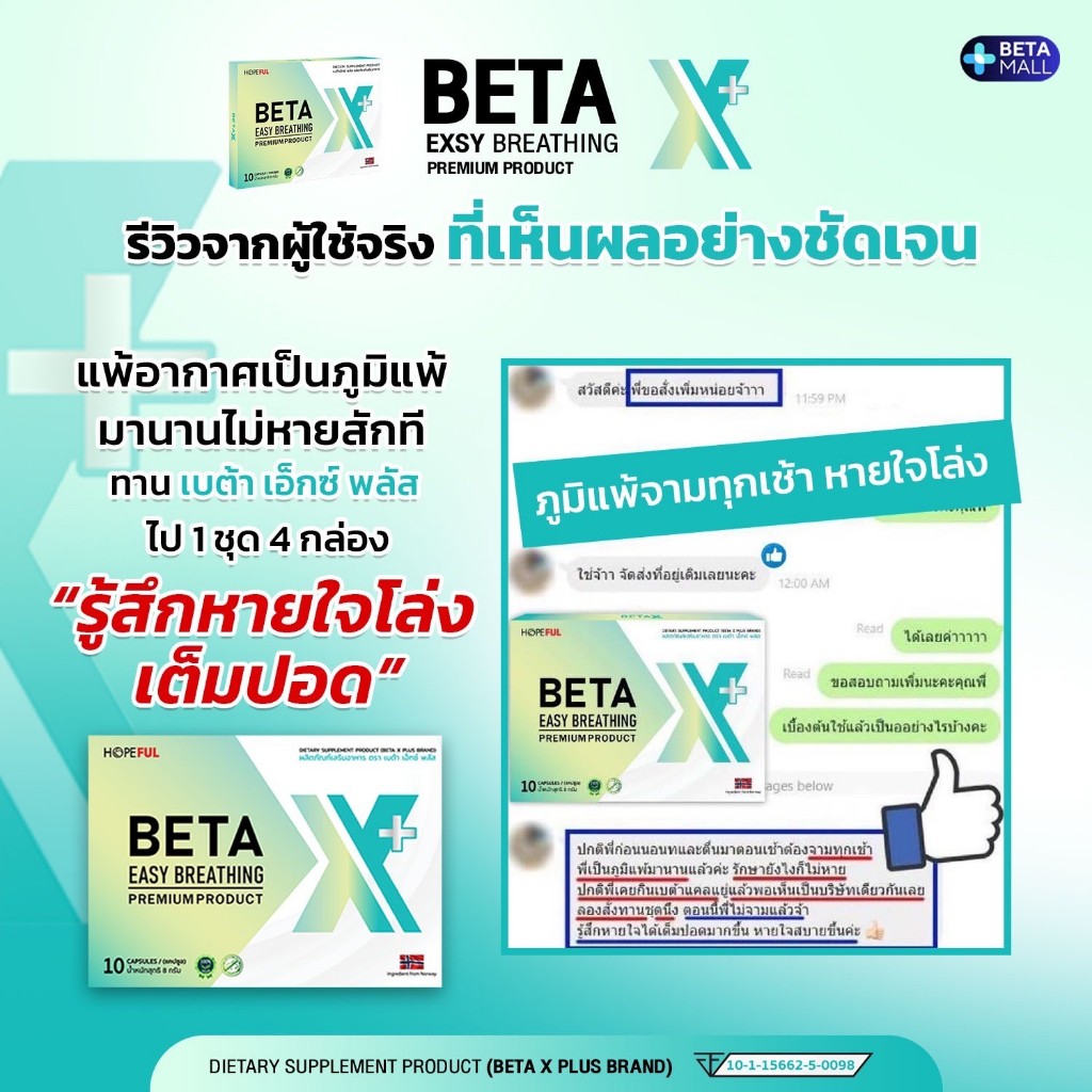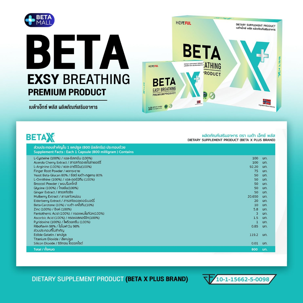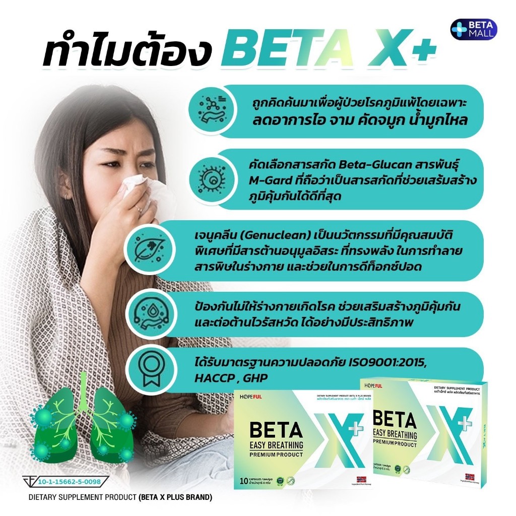 เบต้าเอ็กซ์ พลัส (BETA X PLUS) 1 กล่อง (10 แคปซูล) บำรุงปอด ขับสารพิษ ภูมิคุ้มกัน สูตรใหม่ [BX-1]
