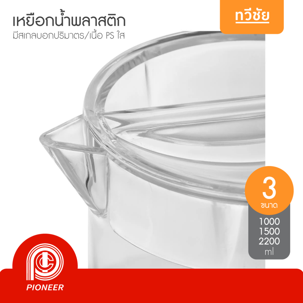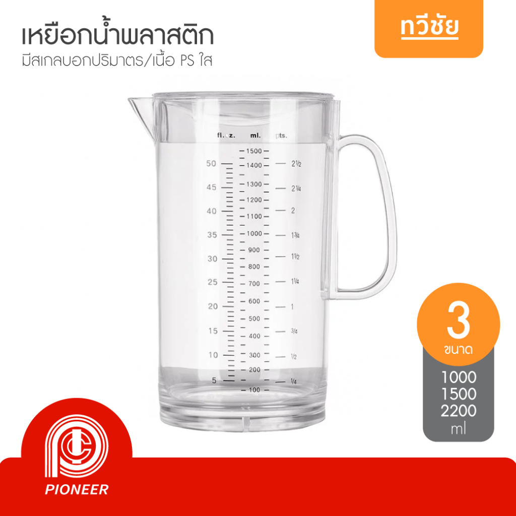 Pioneer เหยือกน้ำพลาสติกใส 1.0/1.5/2.2 ลิตร มีสเกล หนา PS เหยือกตวง เหยือกเหล้าปั่น #ทวีชัย