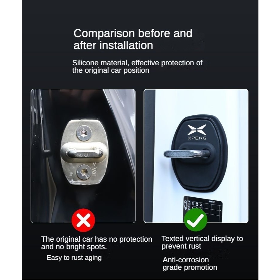 xpeng g6/x9 แผ่นซิลิโคน กันกระแทก สําหรับล็อคประตูรถยนต์ 4 ชิ้น ของแต่ง ชุดแต่ง ของแต่งรถยนต์