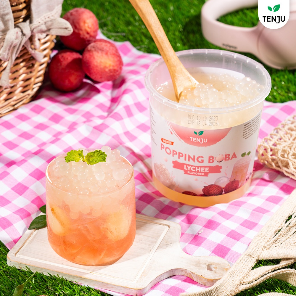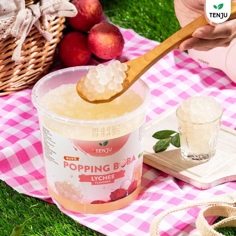 Tenju ไข่มุกป๊อป รสลิ้นจี่ 1.2 กิโลกรัม มุกป๊อป Lychee popping boba topping (ตรา เทนจู)