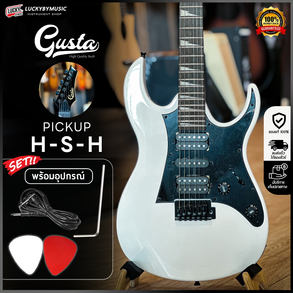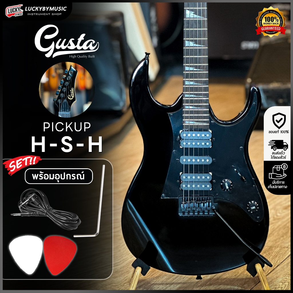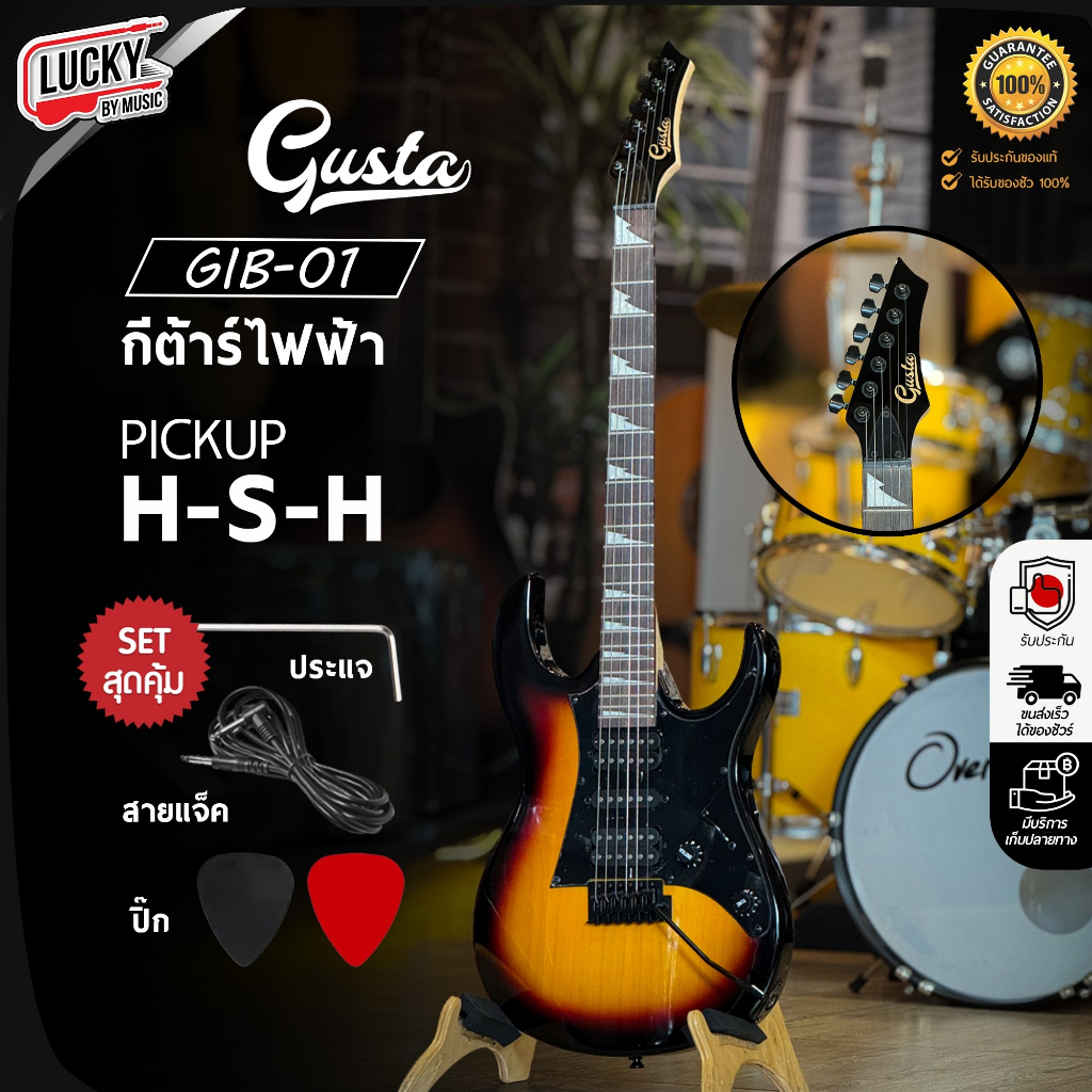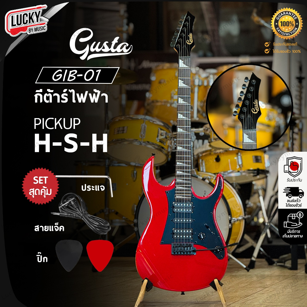 Gusta กีต้าร์ไฟฟ้า รุ่น GIB-01 ปิ๊กอัพ HSH จำนวน 24 เฟรต ฟรี ปิ๊ก2อัน ประแจ สายแจ็ค ใบคอร์ด