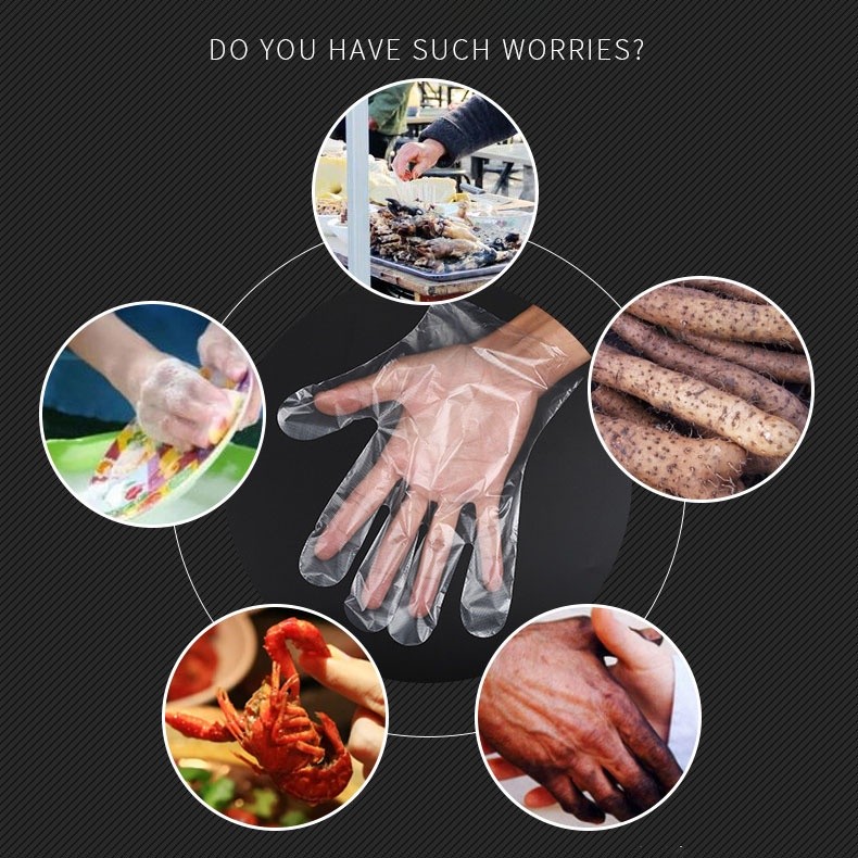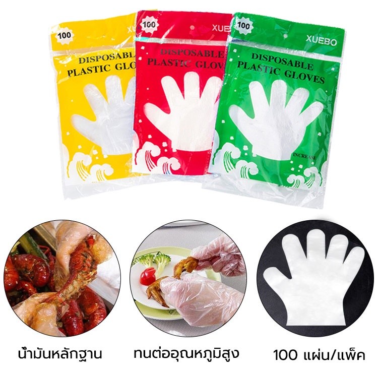 ถุงมือทำอาหาร ( 1 ห่อ มี 100 ชิ้น) ถุงมือทิ้ง ถุงมือพลาสติก บ้าน / จัดเลี้ยงหนากันน้ำและกันน้ำมัน