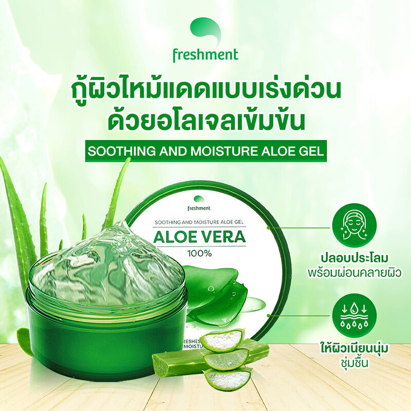 Freshment Soothing And Moisture Aloe Gel 300ml เฟรชเม้นท์ เจลบำรุงผิวว่านหางจระเข้.