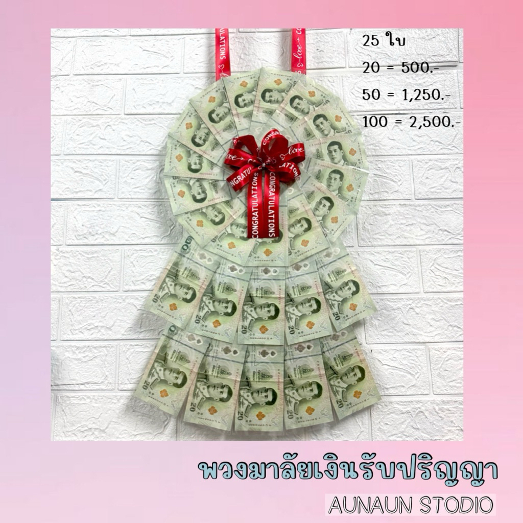 พวงมาลัยเงิน ทรงกลม พวงเงินปัจฉิม รับปริญญา