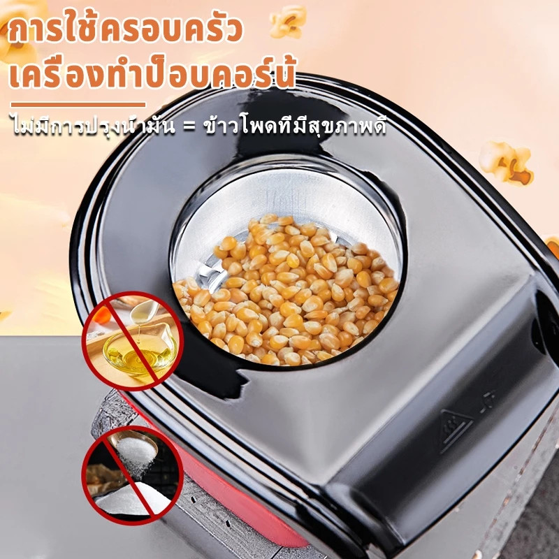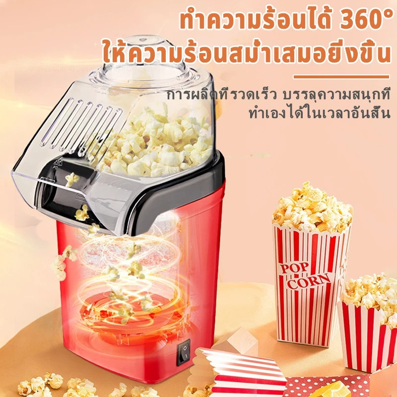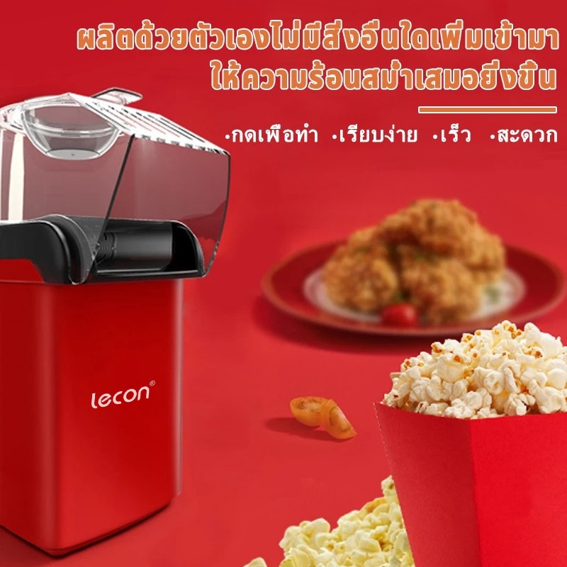 Lecon 1200W เครื่องทำป็อบคอร์น ป๊อบคอร์น เครื่องทำข้าวโพดคั่วขนาดเล็ก Mini Popcorn Machine น้ำหนักเบา สีแดง