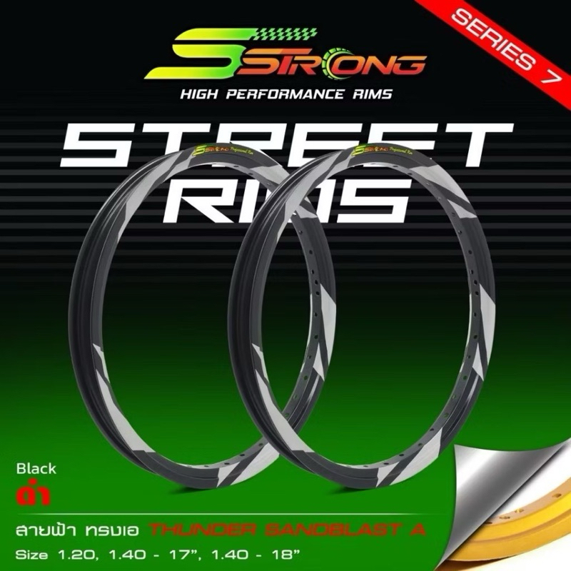 วงล้อ Sstrong(เอสสตรอง)สายฟ้า 1.4ขอบ17 ราคาต่อ 1 คู่งานยิงทราย แถมเสื้อ1 ตัว พร้อมสนข