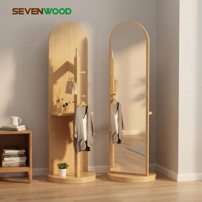 SEVENWOOD กระจก กระจกยาว กระจกเต็มตัว กระจกตั้งพื้นกระจก มินอมอลกระจกแต่งตัวตั้งพื้นกระจกหมุนได้กระจกเต็มตัวมีที่เก็บของ