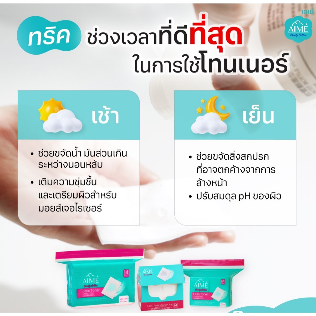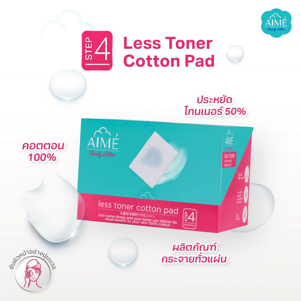 AIME Less Toner สำลีประหยัดโทนเนอร์ 2in1 แผ่นบางพิเศษ แยกแผ่นได้ (เซตคู่ 80 แผ่นx1 และ 240 แผ่นx1)