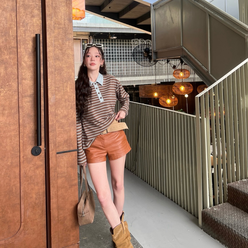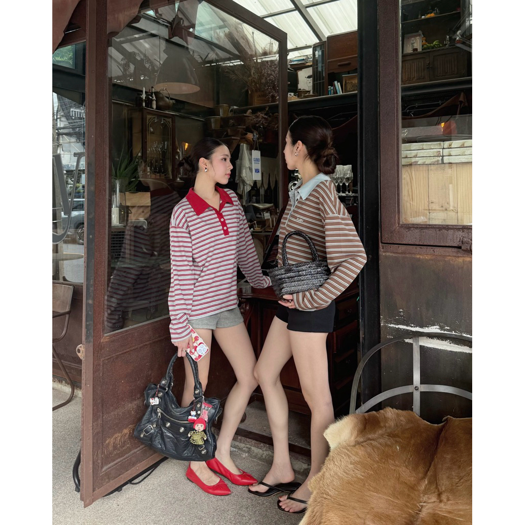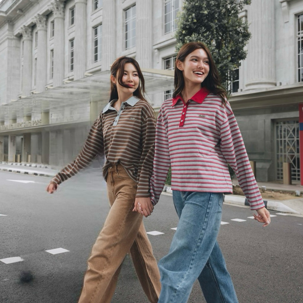 FLASHMARBLE LANY POLO SHIRT เสื้อโปโล แขนยาว ลายทาง