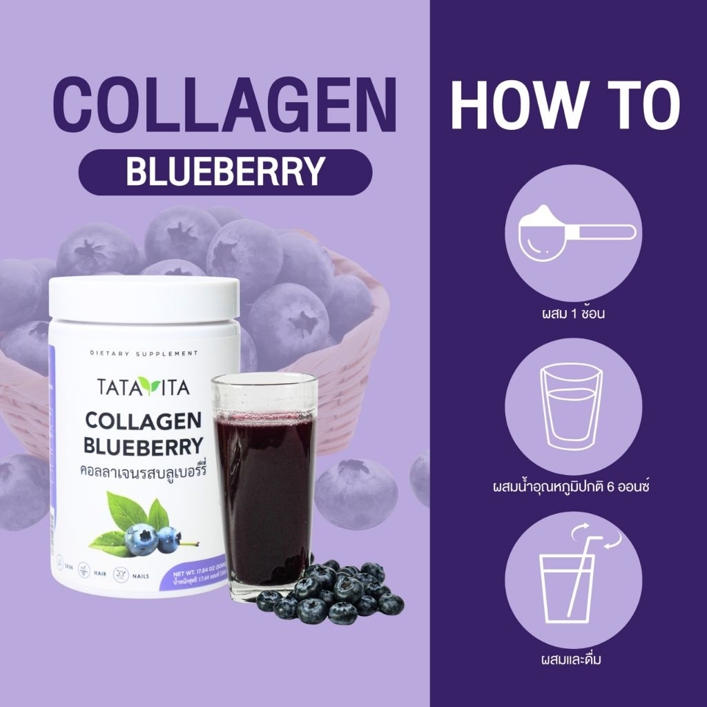 Tatavita คอลลาเจน บลูเบอร์รี่ วิตามินC 2in1 Collagen Blueberry Boost Skin Hair 500g