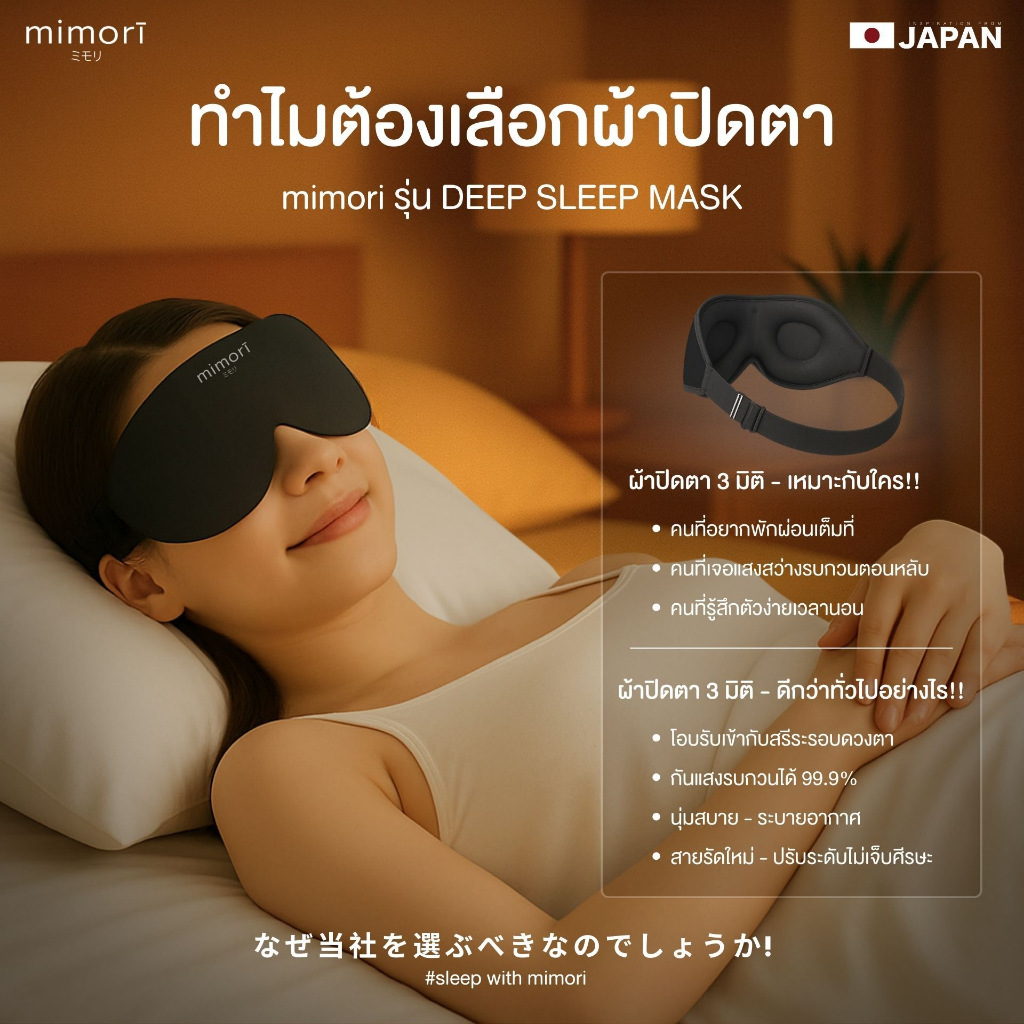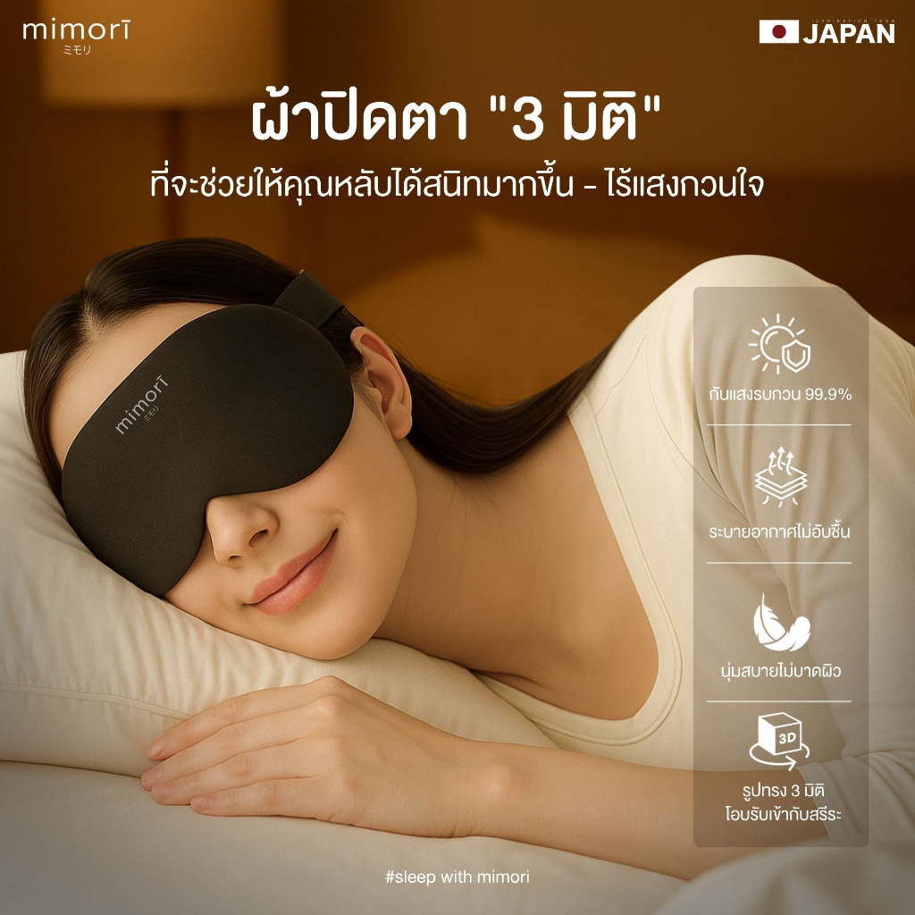 ผ้าปิดตา mimori "3 มิติ" (รุ่น Deep Sleep Mask) ช่วยให้หลับสนิทเพราะกันแสงรบกวนได้ดีมากขึ้น