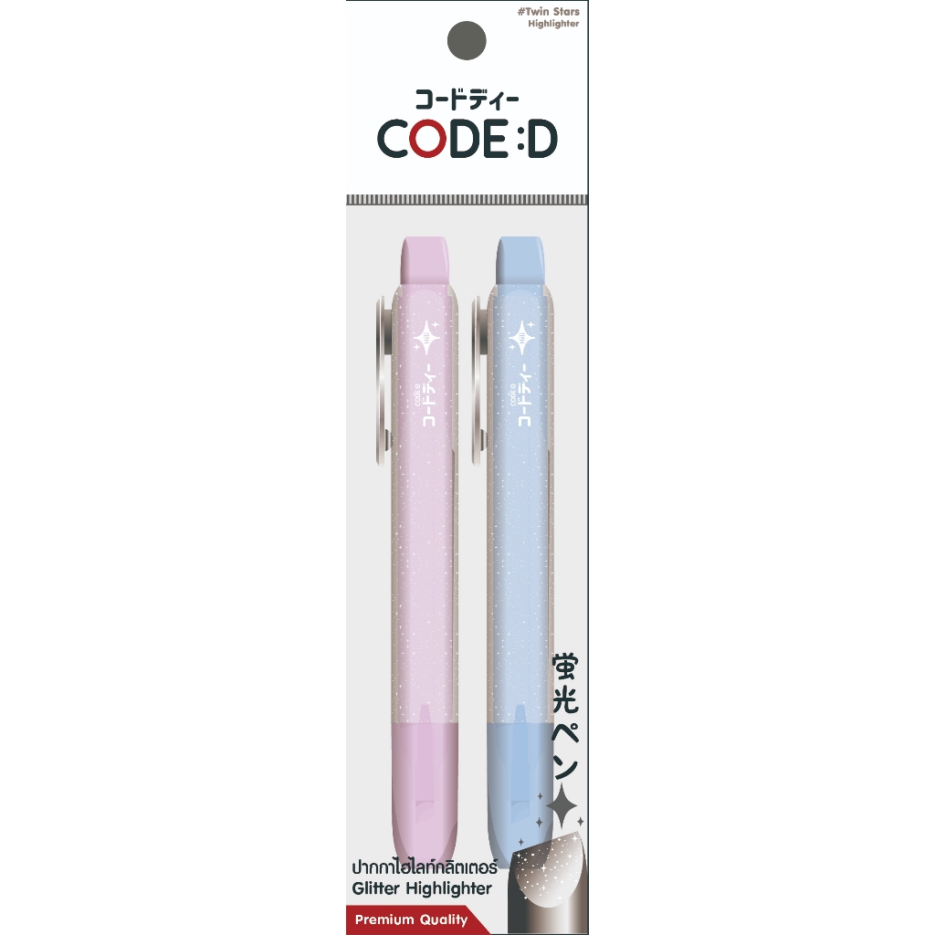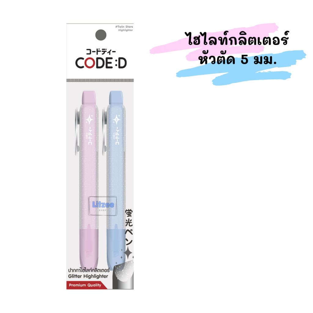 CODE:D ปากกาเน้นข้อความกลิตเตอร์ รุ่น Twin Stars แพ็กคู่ สีชมพูฟ้า หัวตัด 5 มม.