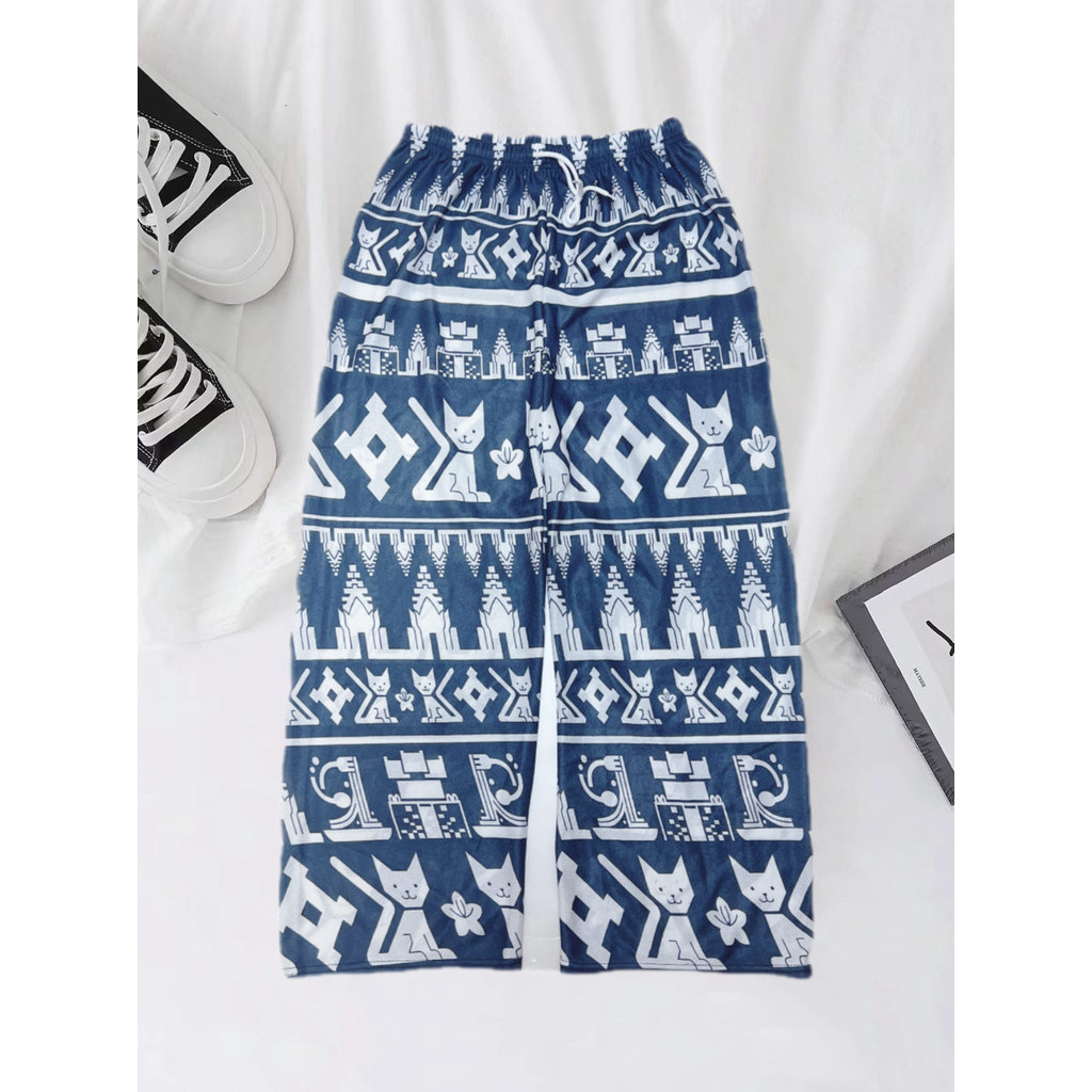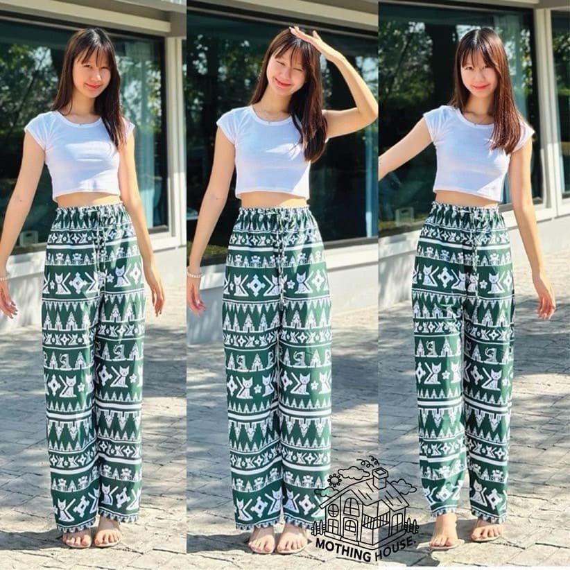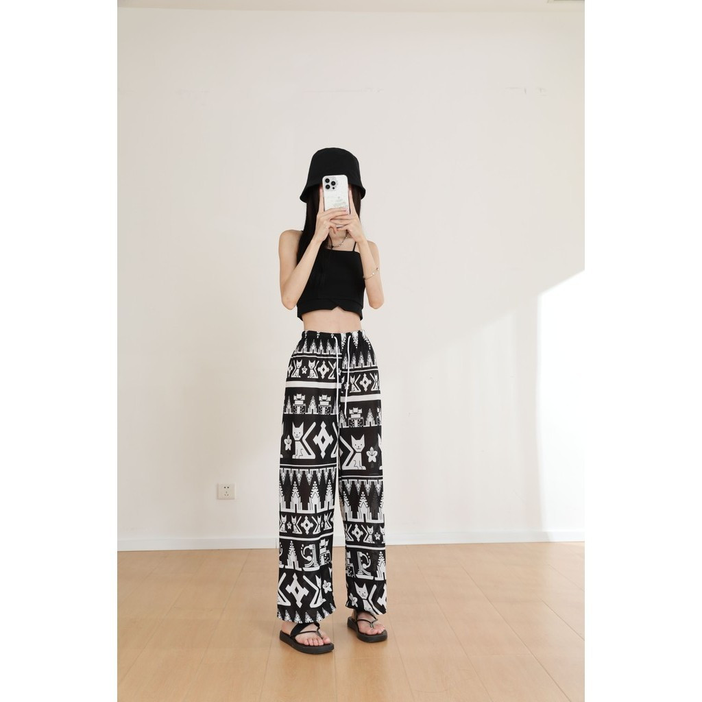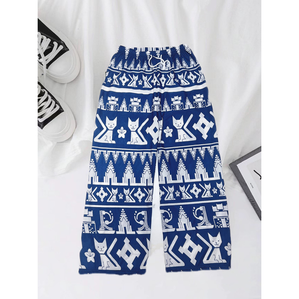 กางเกงลายน้องแมวน่ารัก สไตล์ปล่อยขา เพิ่มความสบาย สไตล์เรียบง่ายแต่มีความเท่ Free Size