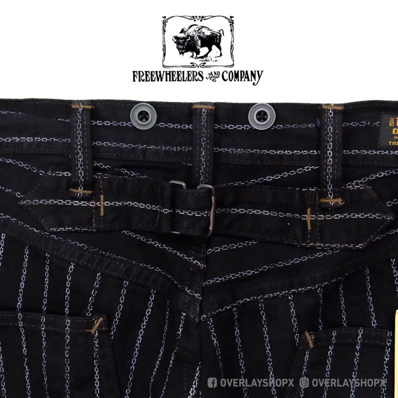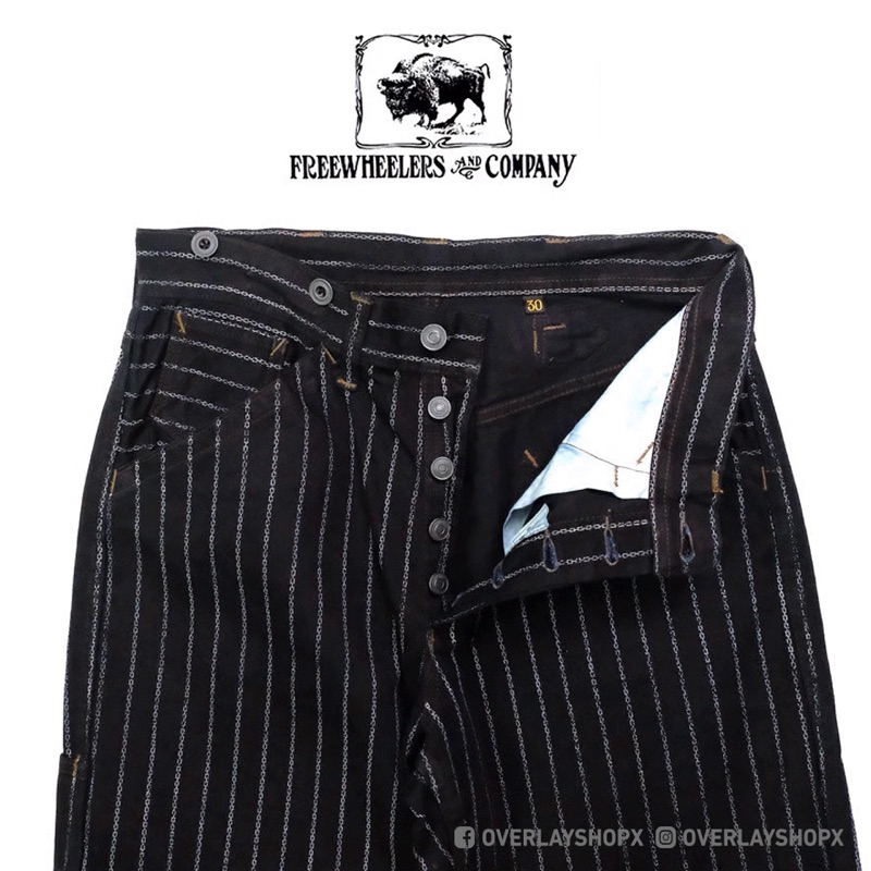 กางเกง FREEWHEELERS PANTS ลายทางห่วงโซ่ หนา 10.5oz สี Navy ทรงขากระบอกตรง