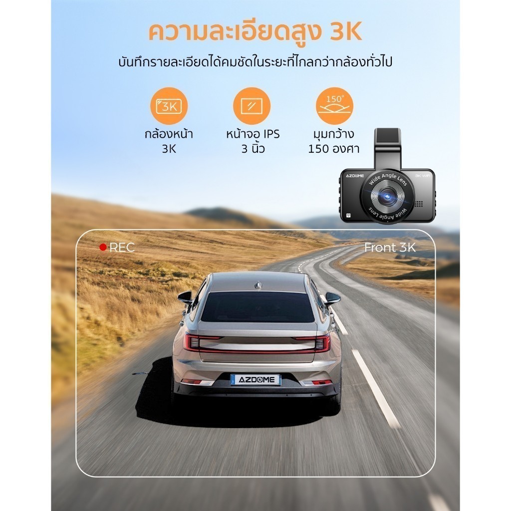 [NEW] AZDOME M17 PRO กล้องติดรถ 3K + 1080P มุมกว้าง 150 องศา USB-C WIFI จอ 3 นิ้ว IPS คมชัด รับประกัน 1 ปี