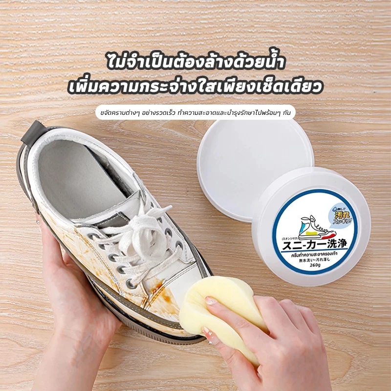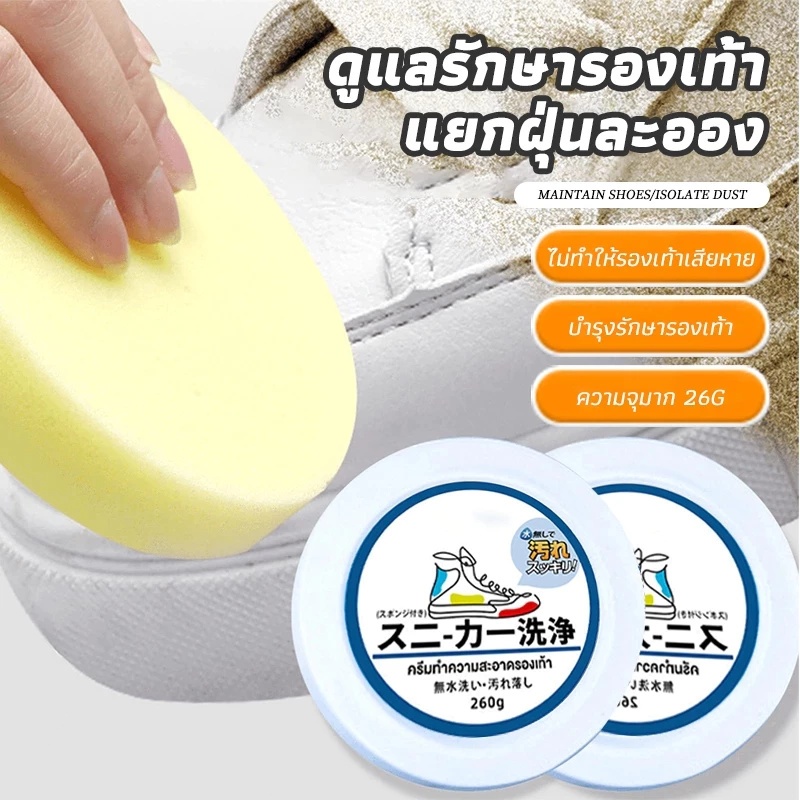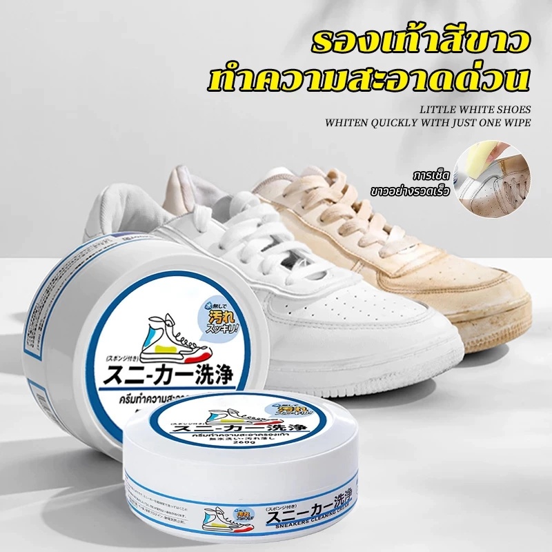 ครีมขัดรองเท้าขาว สูตรอ่อนโยน ทำความสะอาดหมดจด White Shoe Cleaner พร้อมฟองน้ำขัดในตัว ขจัดคราบฝังลึก ไม่ทำลายเนื้อรองเท้
