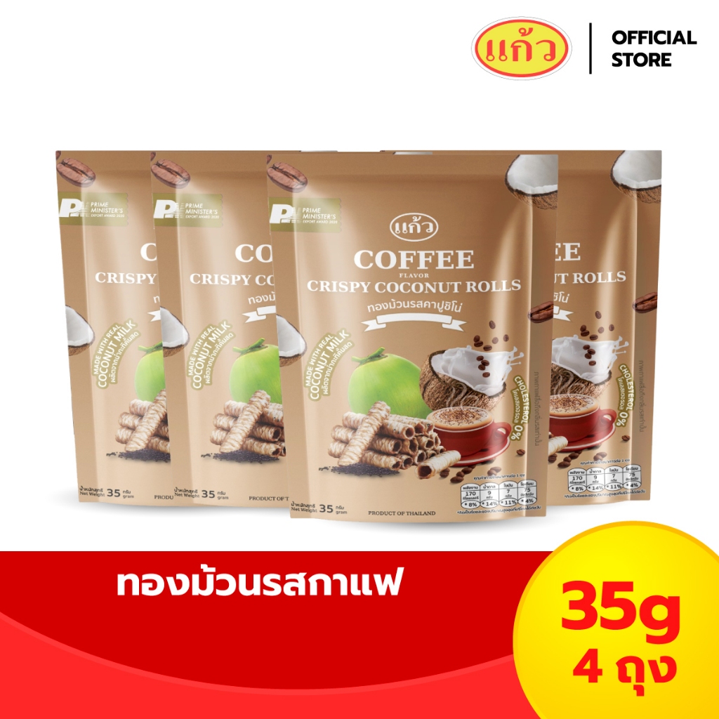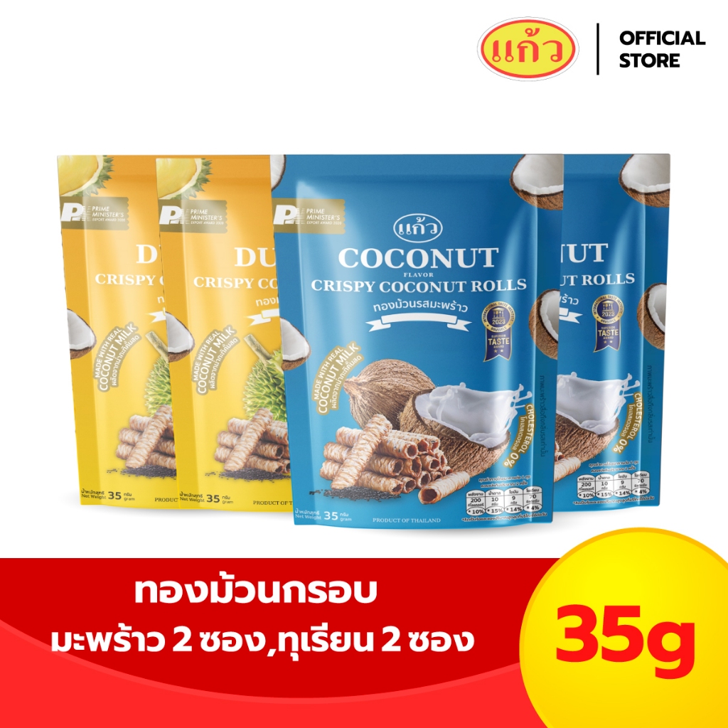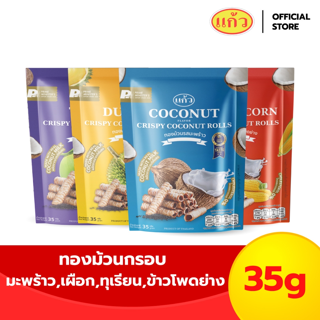 [เซต 4 ถุง] แก้ว ทองม้วนกะทิแท้ ขนาด 35 กรัม เลือกได้ 6 รส ( ของฝาก กาญจนบุรี ขนมไทย ขนมกรุบกรอบ ขนมกินเล่น )