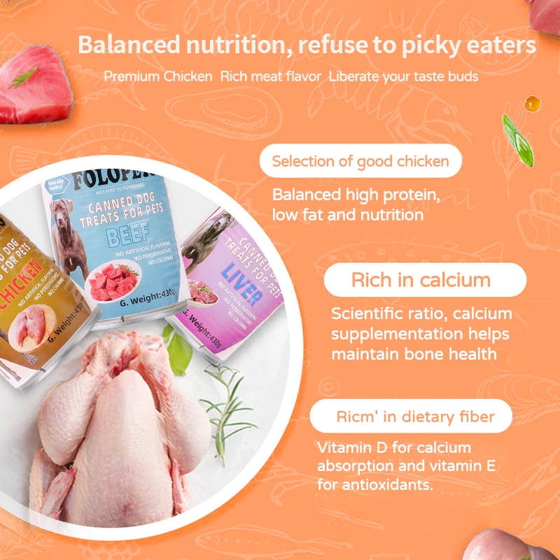 สุนัขกระป๋อง อาหารสุนัขเปียกเนื้อธรรมชาติบริสุทธิ์กระป๋องอินทรีย์อาหารสุนัขโภชนาการลูกสุนัขเนื้อหาสุทธิ 430g