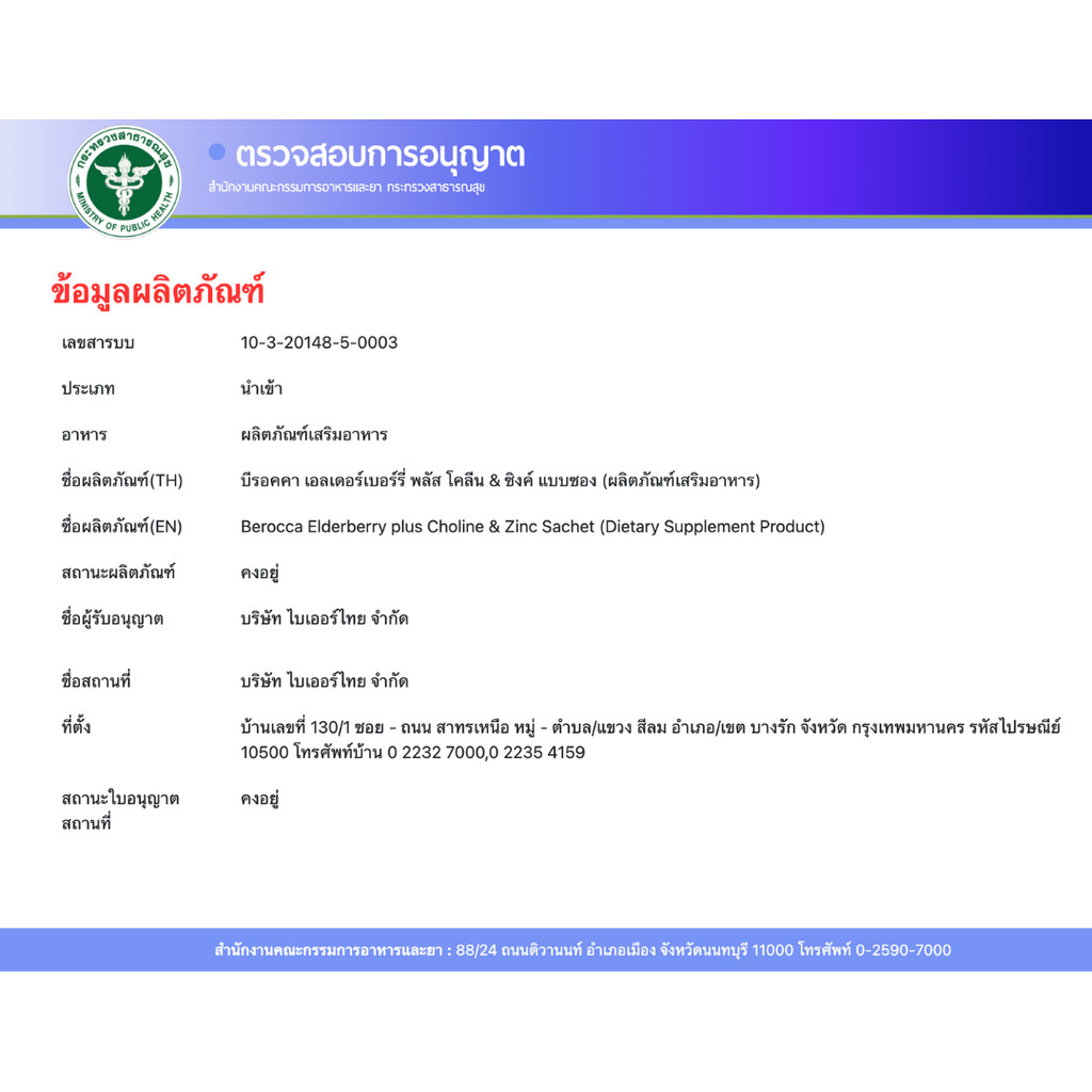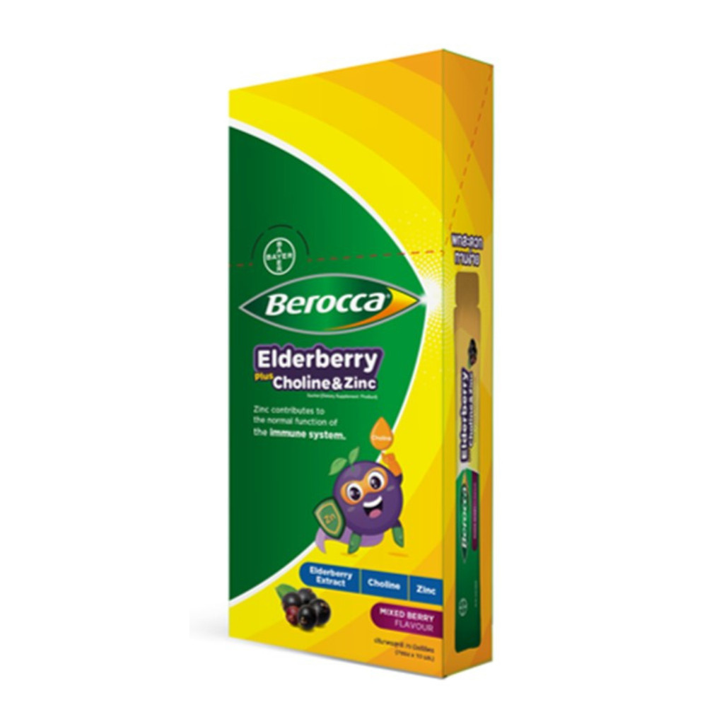 Berocca Elderberry plus Choline & Zinc บีรอคคา เอลเดอร์เบอร์รี่ พลัส โคลีน แอนด์ ซิงค์ 1 กล่อง 7 ซองๆ ละ 10 ml. [PC]