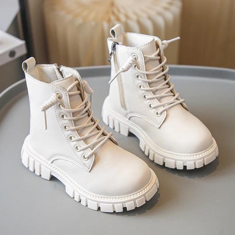 สาวข้อเท้า Boot สีดําโรงเรียนอเนกประสงค์เด็กหนาด้านล่างรองเท้าแฟชั่น Causal เด็กรองเท้าสั้นรอบ toe Zipper
